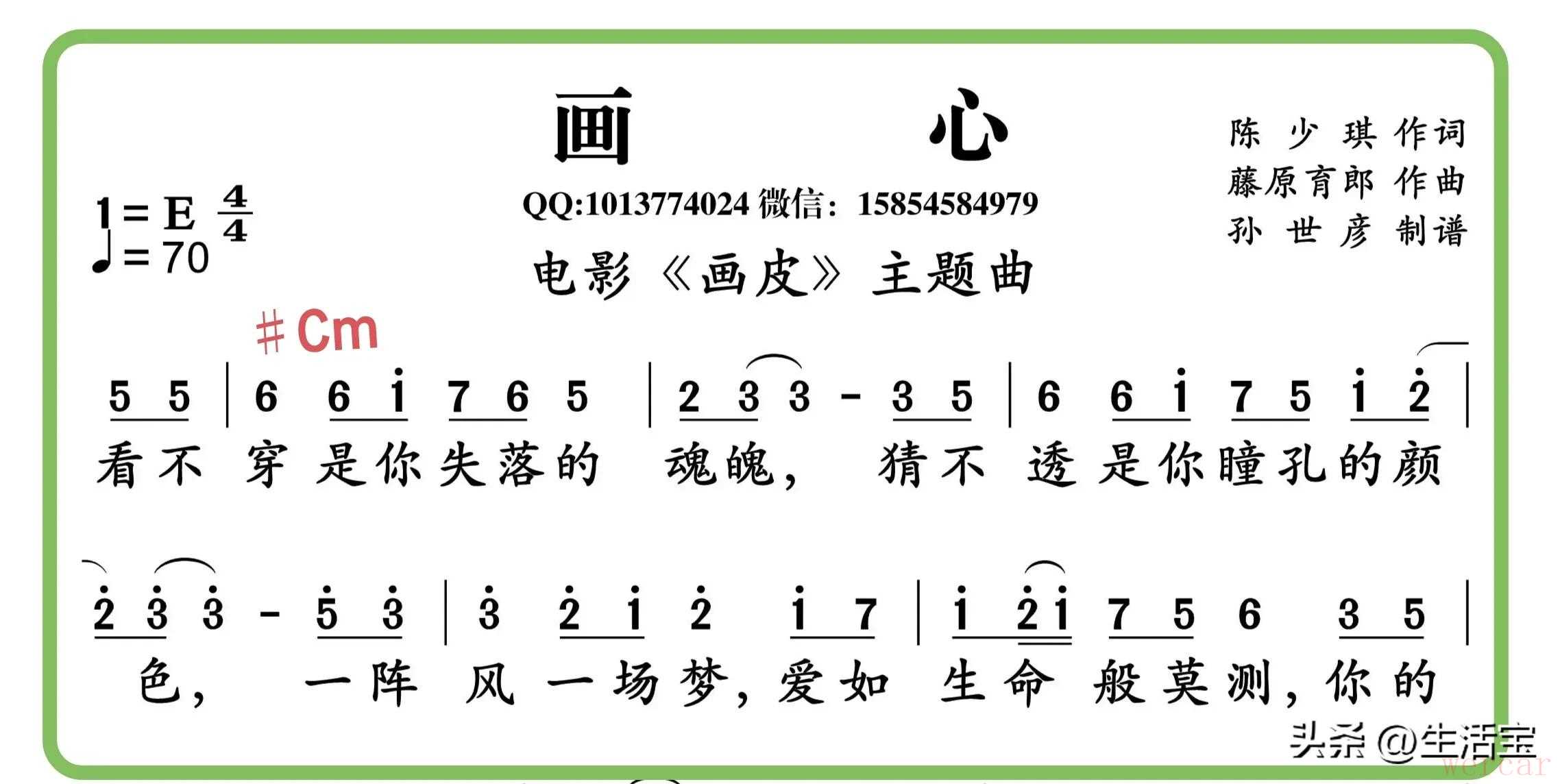 《画心》这首歌曲,有些朋友可能不是很熟悉,通过和弦编配,我们可以了解一下。据说这是电影《画皮》里的歌曲,由张靓颖演唱。编配和弦,了解一下歌曲,回顾一下电影,也是不错的一种体验。