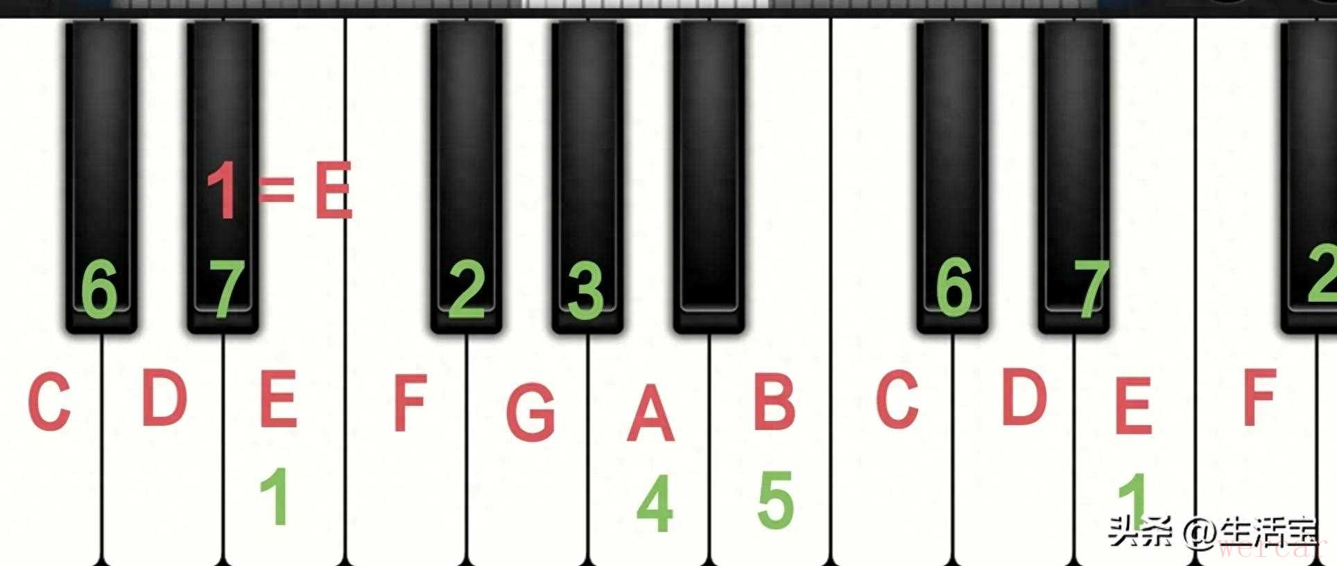 从E大调的主音E往下小三度,是 "C"。