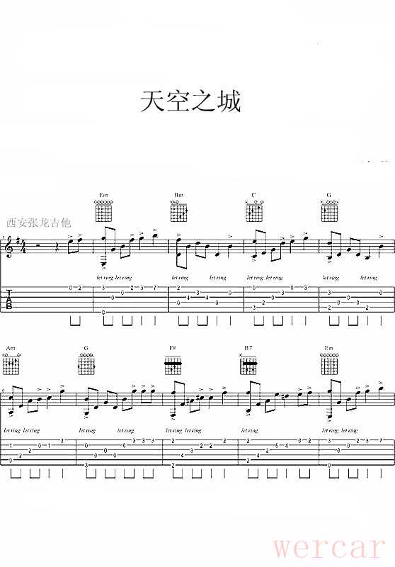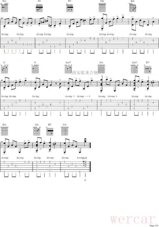 谱子如下,如有哪里不会弹奏或者想观看更多内容,可自行“西安张龙吉他”。