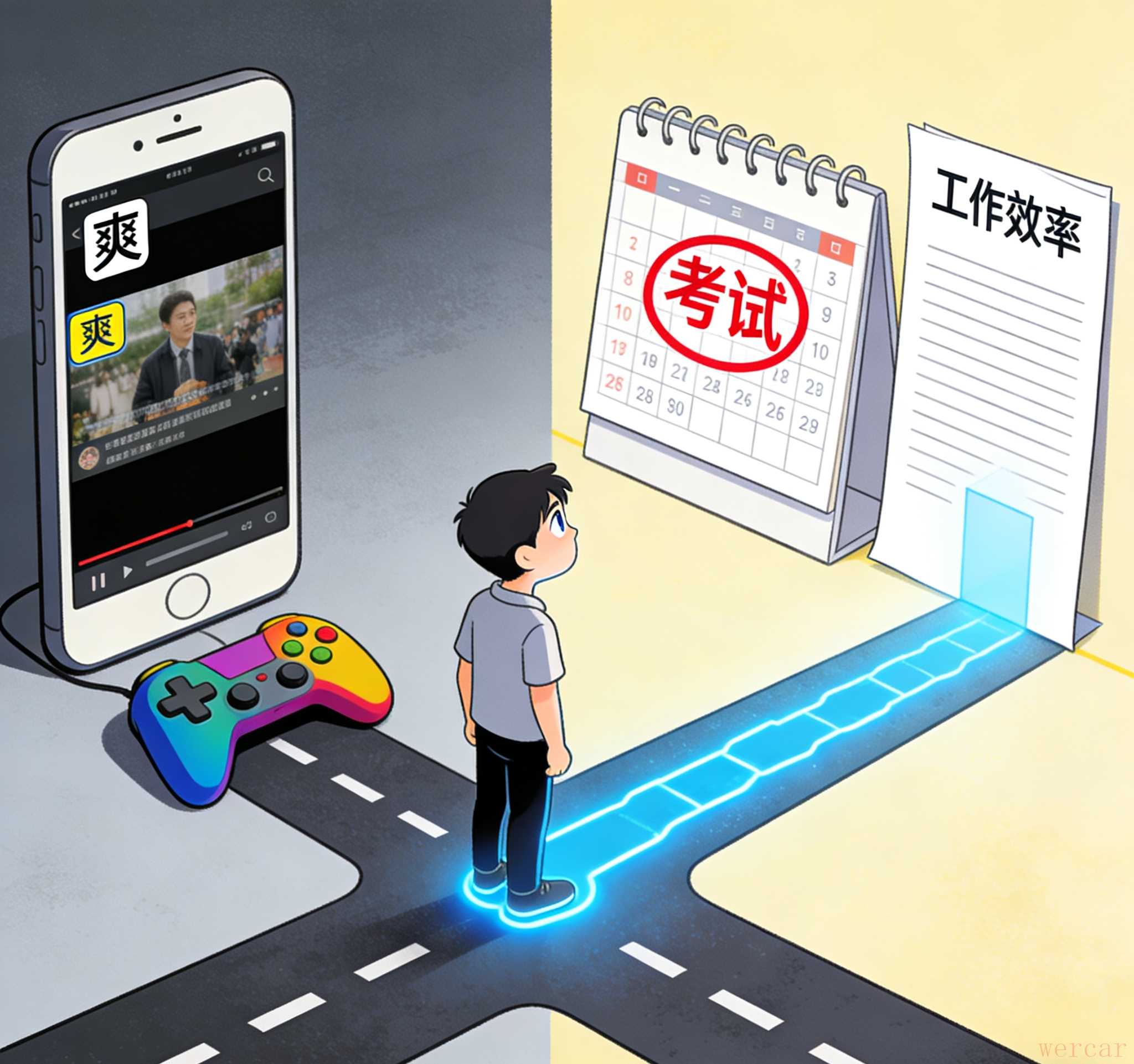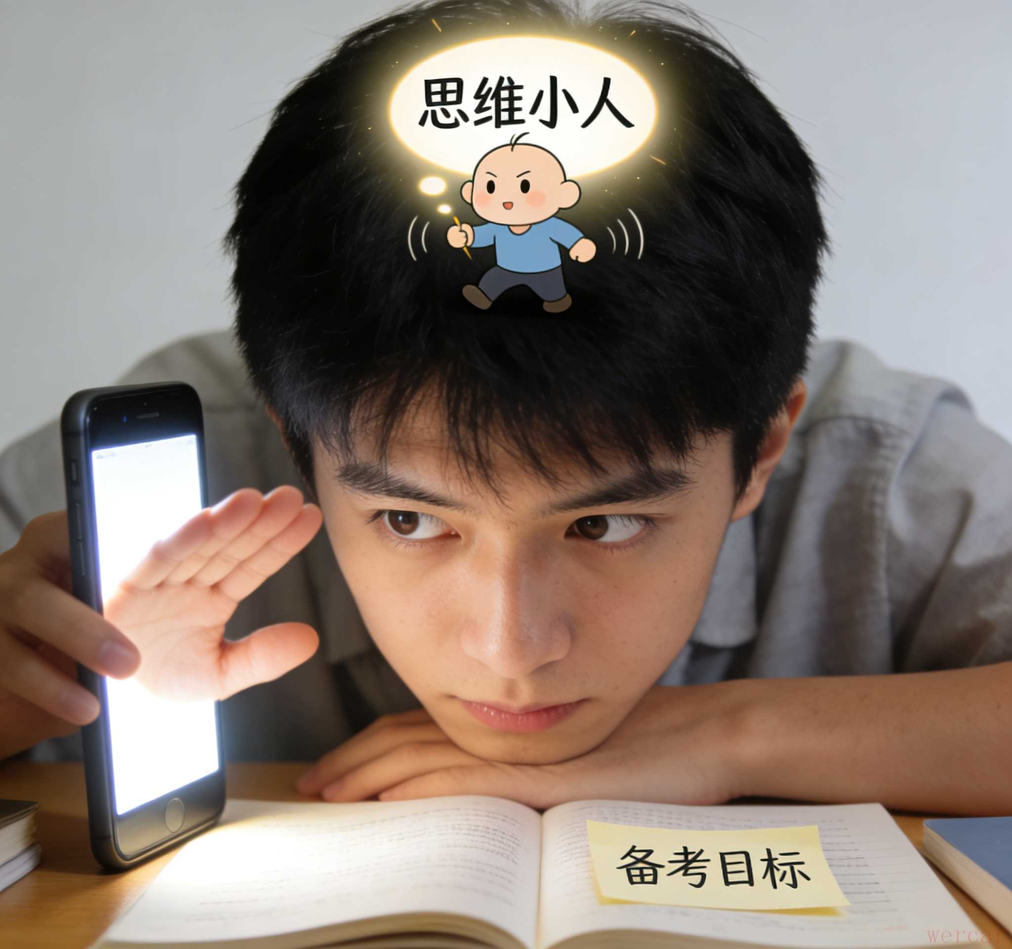 刷手机刷到一半,突然有个声音冒出来:“你不是要备考吗?别浪费时间了!”于是立刻放下手机,拉回思绪。