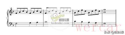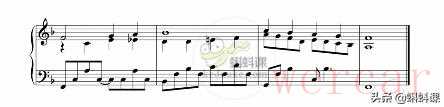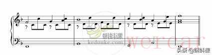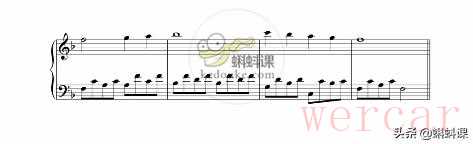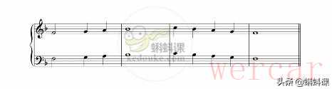(1)F大调4小节的旋律,单旋律。这种写法的曲子通常听起来都会比较单调。
