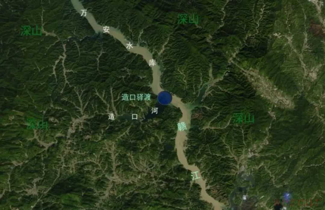 我们实地考察的结果,造口也是在深山里。2020年8月26日,我们专程去郁孤台和造口实地考察,赣南师范大学文学院吴中胜教授、井冈山大学文学院龚奎林教授和万安县副县长李桂平陪同并作向导。李副县长1985年起在造口一带工作多年,又是乡土作家,对本地人文地理和历史掌故相当熟悉。他特地安排一只游船,从万安水库(又名万安湖)大坝出发,从水上去造口村考察。船行水上,可见水库四周的青山多被淹至半山腰,已经看不到山高、山深的景象。但可以想象,如果是在水库建成之前乘小船行走在现在水面30米以下的赣江,江面狭窄,仰看两岸青山,应该是很高峻的。船行一小时左右,来到造口村。李副县长告诉我们,20世纪90年代修建的万安水库,已将造口村大部分淹没,只有几户人家还住水边。原古渡口和驿站遗址也淹没在水下数十米。由于水面宽阔,现在的造口村,已难见到辛弃疾当时所亲历的山深之景。但造口四周是绵延起伏的山峦,如果穿越回到未建万安水库的30年前或更远的年代,完全可以想象和感受造口村深处群山之中的情景。清初著名诗人王士祯《皂口雨泊》诗可为佐证:“急雨孤篷湿,高峰四面同。茫茫送滩水,飒飒会江风。山鬼幽篁里,枫人苦雾中。”造口附近被高耸的山峰所包围,不能放眼远眺。他所描写的现场景象,与辛弃疾笔下的深山相同,也与今天造口的地貌特点吻合。总之,从历史记载、卫星图像和实地现场感受来看,往昔的造口是在深山环抱之中。接着的问题是,造口此地能听到鹧鸪啼叫吗?李桂平副县长说,当年他在造口时经常可以听到鹧鸪叫。我们还可以举清初诗人的描写作为现场耳闻目击的旁证。清代诗人施闰章《从制府江行》诗写道:“棹入双江路,云迷皂口西。昨宵愁不寐,恰有鹧鸪啼。”造口附近的深山里,到处听得见鹧鸪啼鸣。清任又班夜泊十八滩时,见“夹岸阴岩暗薜萝,鹧鸪拍拍拂船过”,可以想见造口一带鹧鸪甚多,有时随船飞逐。还有一疑问:依据我们的日常经验,鹧鸪往往是春天啼鸣,而辛弃疾此词是秋天所作,秋天的鹧鸪也啼鸣吗?答案是肯定的,这有唐宋元明人的诗歌为证。唐李群玉《九子坡闻鹧鸪》的“落照苍茫秋草明,鹧鸪啼处远人行”,即明说秋日听见鹧鸪啼。北宋李彭《重游草堂》诗写道:“今年森木挂秋暑,鹧鸪钩辀向我啼。”也是写秋暑时鹧鸪“向我啼”。宋末元初艾性夫《古驿》说:“旧时邻曲各东西,野蔓荒藤压树低。过尽路牌无客影,一冈秋雨鹧鸪啼。”元人刘敬《赋得潇湘曲送复上人之湖南》有“鹧鸪啼雨苍梧秋,渺渺吴云天尽头”之句,明人史杰《竹石图》也写到秋天在潇湘听到鹧鸪啼:“记得推篷湘水曲,满林秋色鹧鸪啼。”毛绍龄《闻鹧鸪》同样写有“倦客未归秋又尽,鹧鸪啼破隔江烟”的情景。如果说,上面这些诗句,只是表明秋天可闻鹧鸪啼鸣,但不能据此推论造口的秋天也可以听到鹧鸪啼鸣,那么,明代诗人乌斯道的《过十八滩》,描写的正是赣江两岸的秋景:“鹧鸪又复啼秋雨,便合重题蜀道难。”可见造口一带秋天确实是可以听到鹧鸪啼鸣的。清彭孙贻《储潭》诗也同样写到秋天在造口听鹧鸪的啼唱:“离家三月到虔南,又见吴霜落晓簪。听尽鹧鸪行不得,伤心秋色满储潭。”虔南,即赣州;储潭,在赣州城北二十里的赣江中。造口与深山、鹧鸪,是同一现场的景象。因此,我们有理由相信,辛弃疾《菩萨蛮·书江西造口壁》词的创作现场,就是在造口驿。也就是说,词是在造口驿创作,并题写在驿壁上。词一路写来,先从来时的郁孤台写起,再顺江而下,写到造口所处的深山。