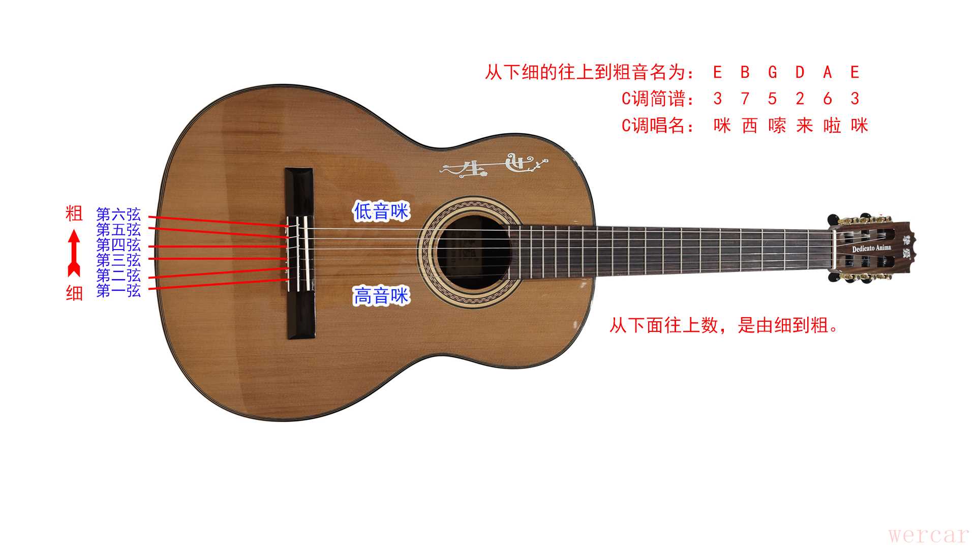 如上图从下往上为一弦到六弦。