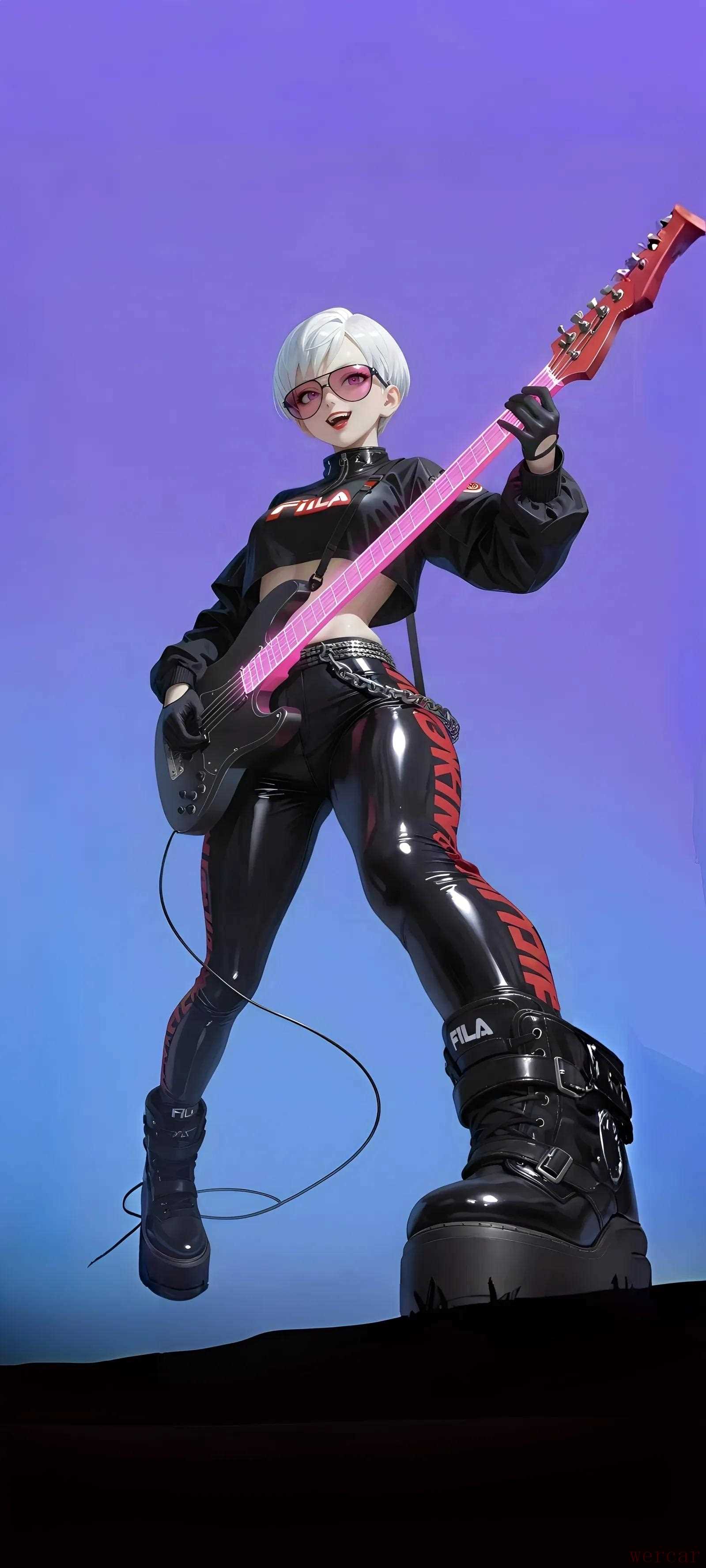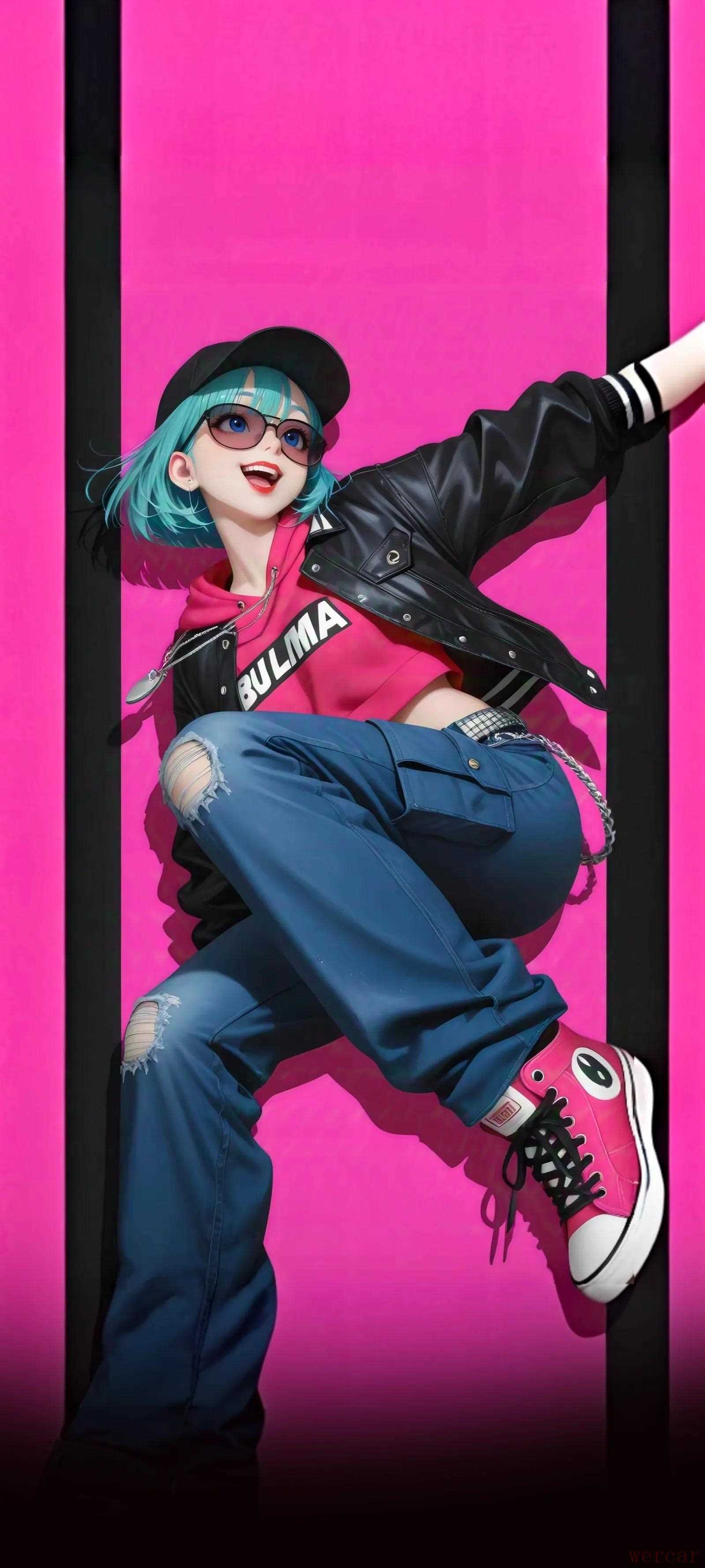 左边是街舞少年的肆意——粉蓝发梢跃动,破洞牛仔裹着风,在玫红背景里把自由跳成符号;右边是摇滚酷姐的张扬——银白短发刺目,漆皮裤锁着野,电吉他的霓虹弦震碎沉闷。 两种潮态,同以“破格”为语,在街头与舞台的交界,将青春的叛逆与热爱,燃成最耀眼的风格烟火。