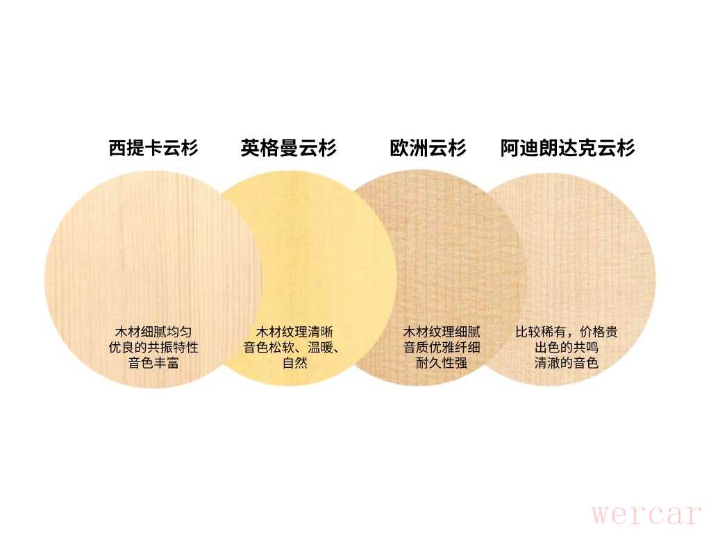 一般来说,同样树种的木材,等级越高说明质量越好,用做面板使用最终的声音效果也会更出色。