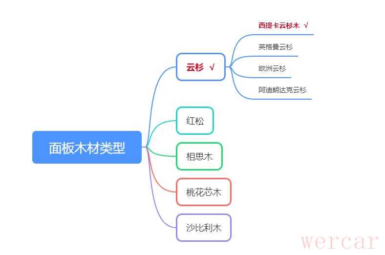 市面上比较常见的面板木材有云杉、红松、相思木、桃花芯木、沙比利木等。