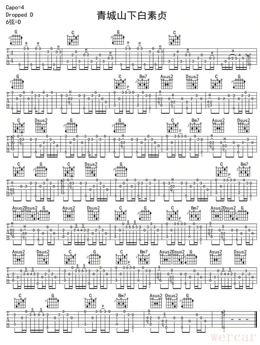 《青城山下白素贞》通常是基于《白蛇传》的戏曲或歌曲旋律改编的。熟悉歌曲旋律对理解吉他谱非常有帮助。
