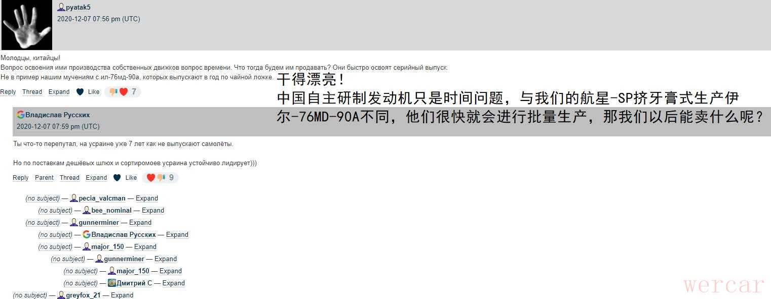 军机图在逛俄罗斯军事论坛时发现了一个有意思的现象,在WS-20装机试飞的新闻留言板,多数俄罗斯网友并没有“酸”WS-20,看待WS-20的心态很平和,甚至有一部分赞赏的声音。当然了,俄罗斯网友在感叹邻国航发水平进展神速的同时,也不由得拿WS-20版运-20和自家的伊尔-76MD-90A运输机作对比,有网友指出WS-20试验完成之后应该很快就会进行量产,但一想到俄罗斯的伊尔-76MD-90A年产量只有2架,读来不免有种“怒其不争”的感觉。而对于俄罗斯航空工业而已,WS-20之后,俄罗斯能出售的东西就越来越少了。