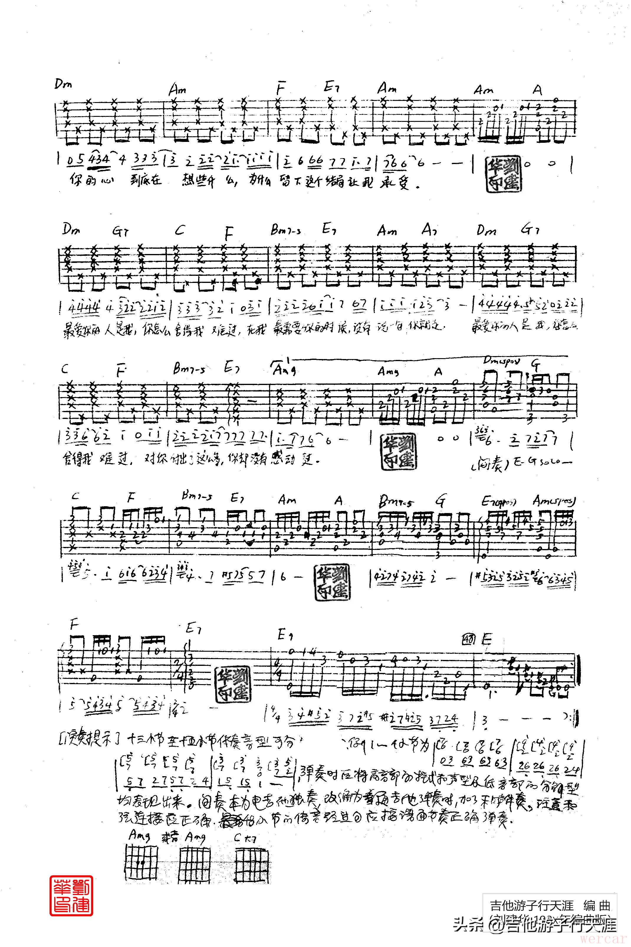 游子心声吉他弹唱,经典歌曲你怎么舍得我难过手写谱赏析