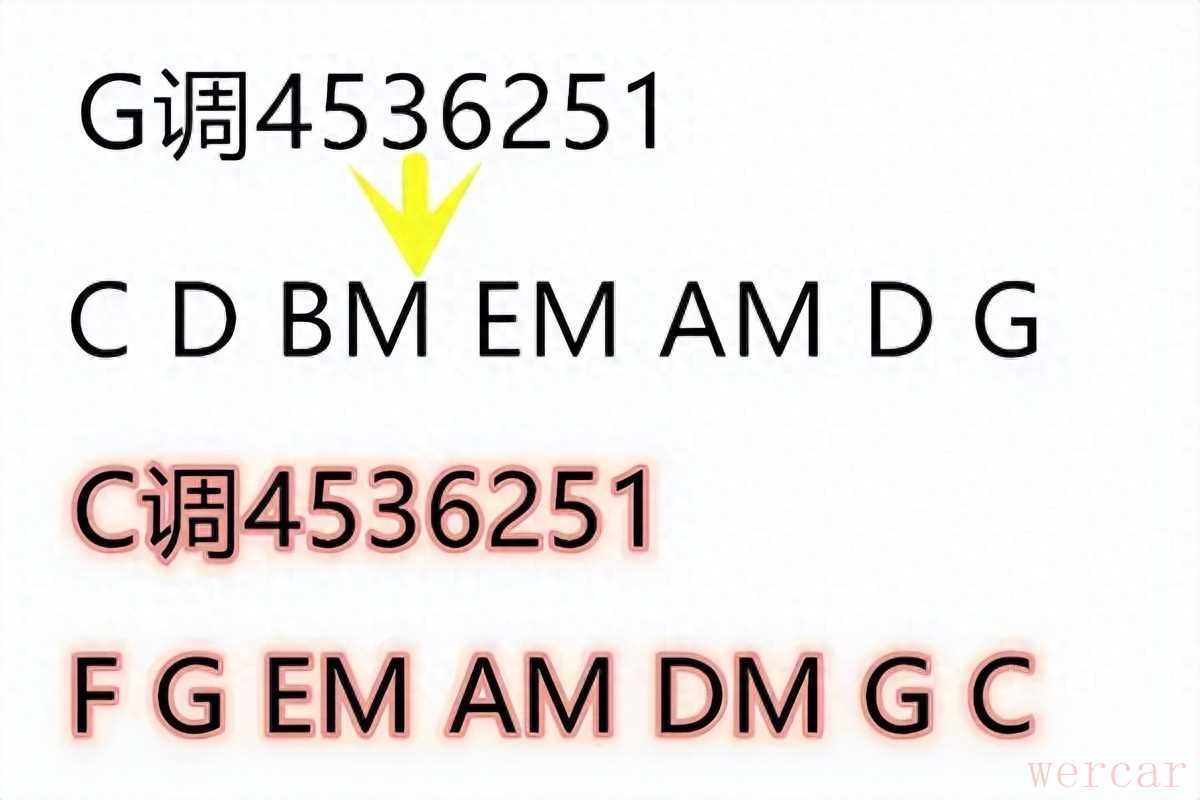 - 经常听乐手说的4536251万能和弦进行到底是个啥?通过上面三个结论,相信你应该已经明了,他就是和弦的顺序排列。C调来说4536251就是F G EM AM DM G C这样的和弦顺序。其他的调式都一样。所以大家需要把各个调的六个基本和弦都写出来。这里就先不贴图了,大家先自己推算一下,自己推出来印象会更深一点。