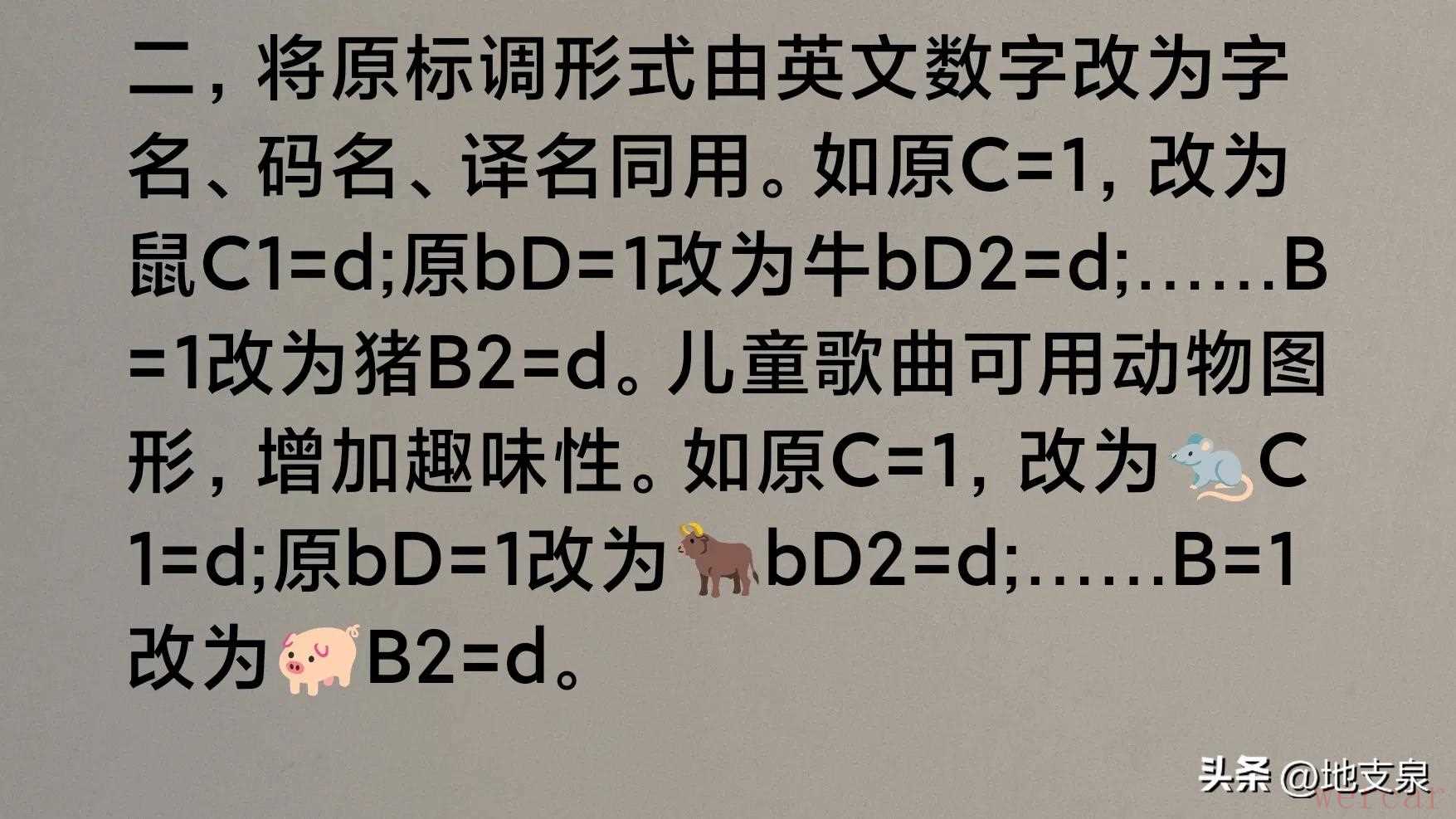 根据十二音律地支命名方法,在老简谱基础上,试推行一种新简谱。