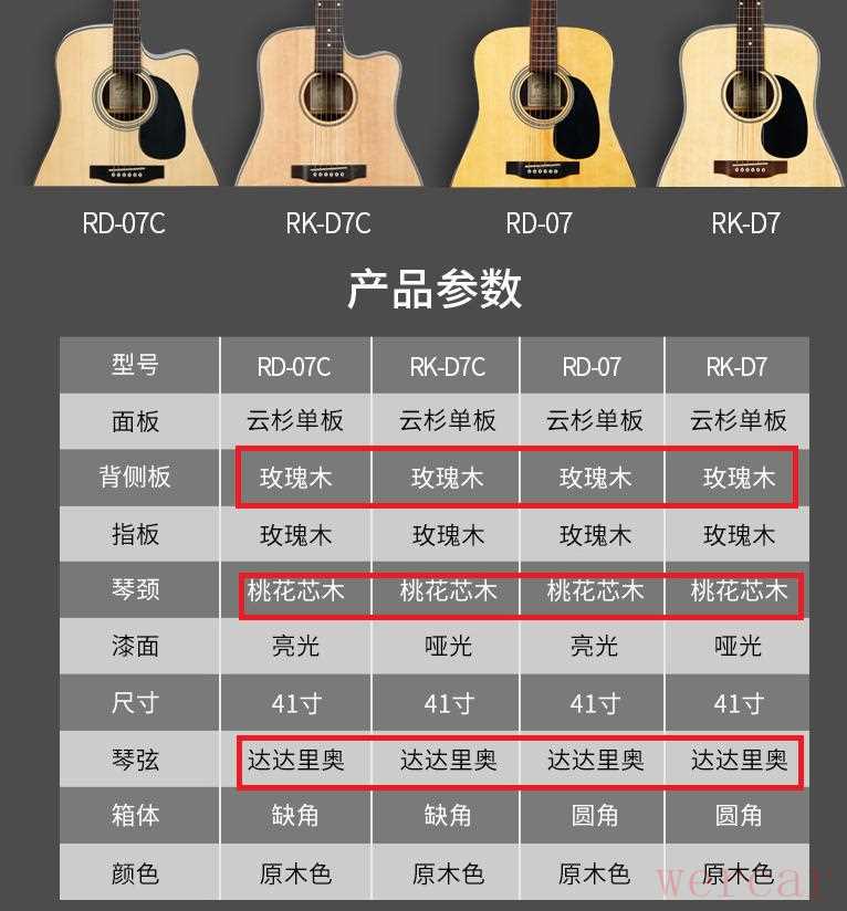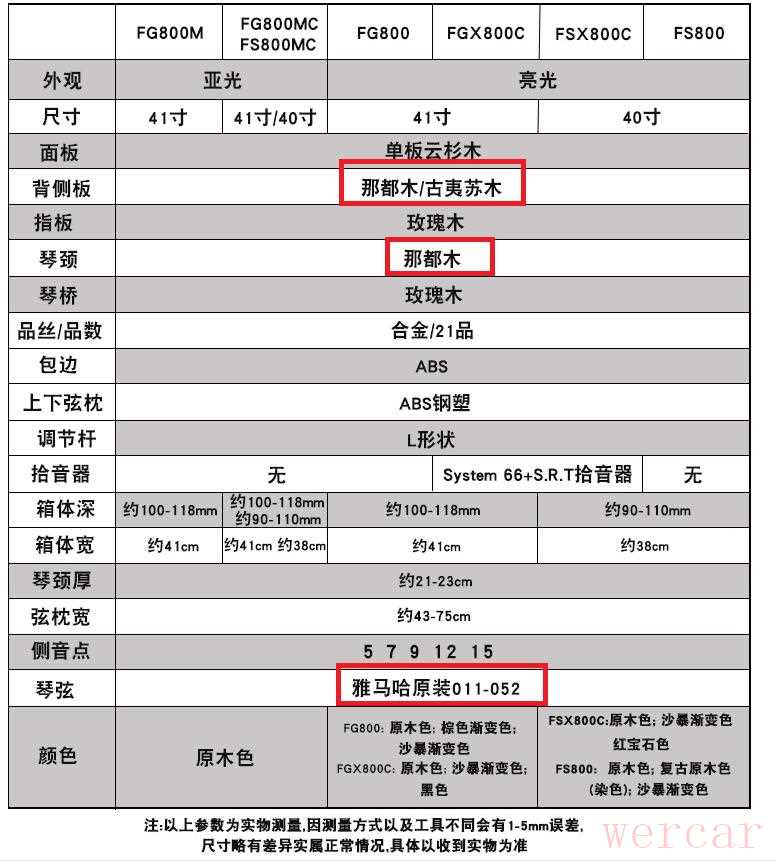 为什么说这把录音之王07是雅马哈FG800的终结者呢?当然雅马哈无法真正终结,因为啥也不懂就认识雅马哈的小白毕竟大多数,但是只要看看下面的配置表,就一目了然了: