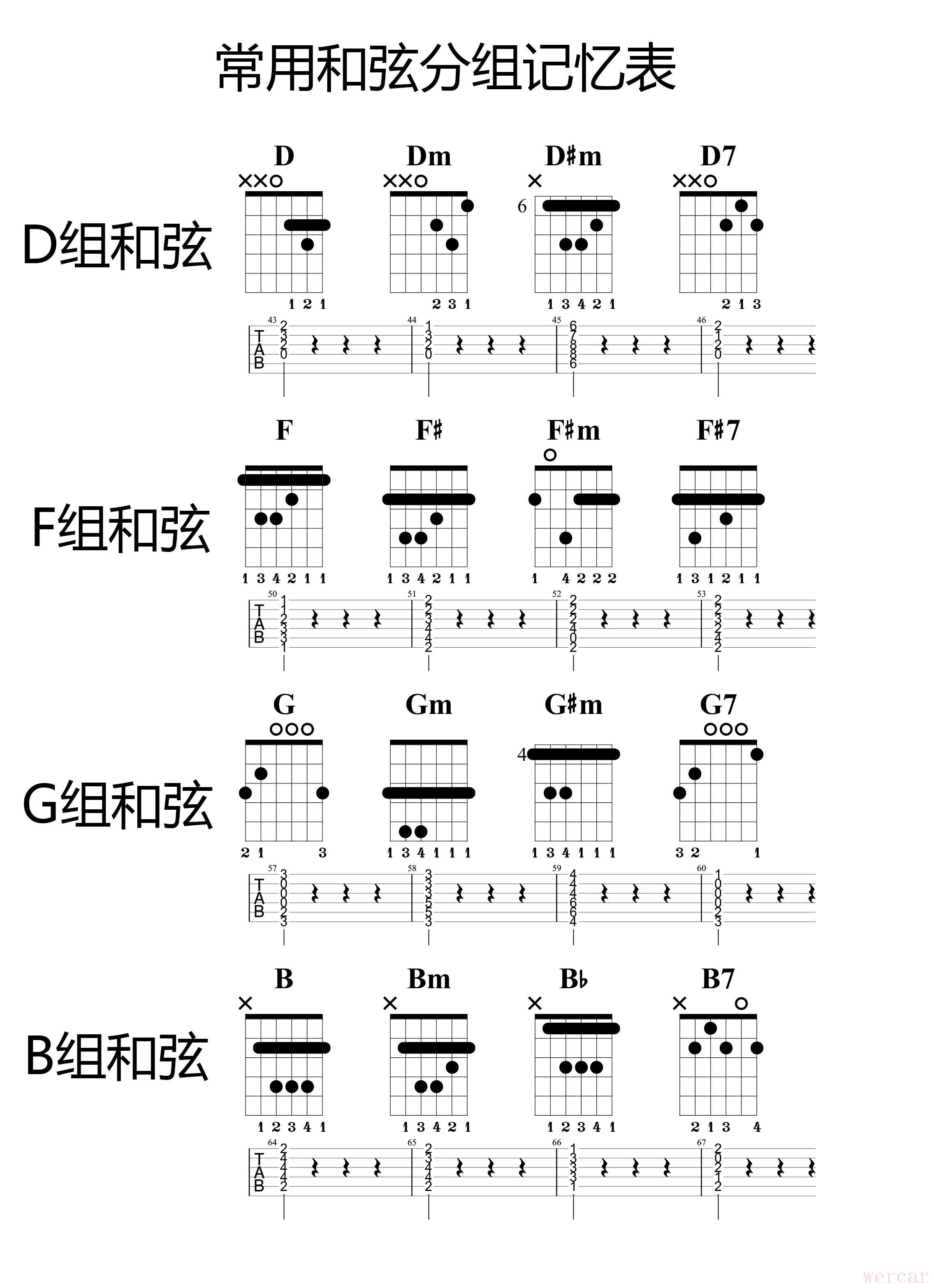 2、D组和弦、F组和弦、G组和弦、B组和弦
