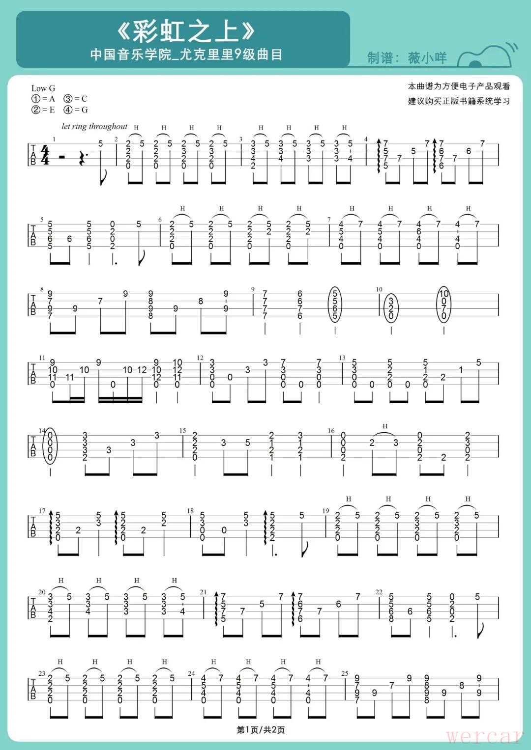 中国音乐学院尤克里里9级考级曲目彩虹之上曲谱示范解析