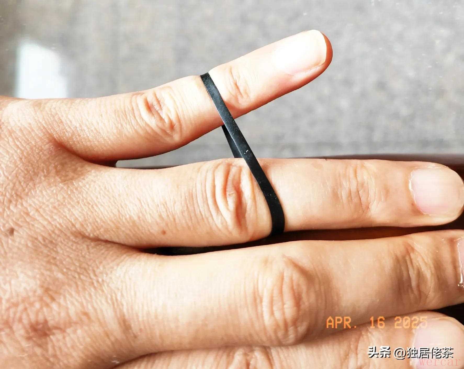 然后,先练习“小指扩展肌”。用橡皮筋将小拇指和无名指绑在一起,松紧度根据自己的生理结构调节适当。然后就可以练习了。用小拇指用力向外侧扩展,扩展一下回来为一次,15次为一组,一共做5组就可以了。