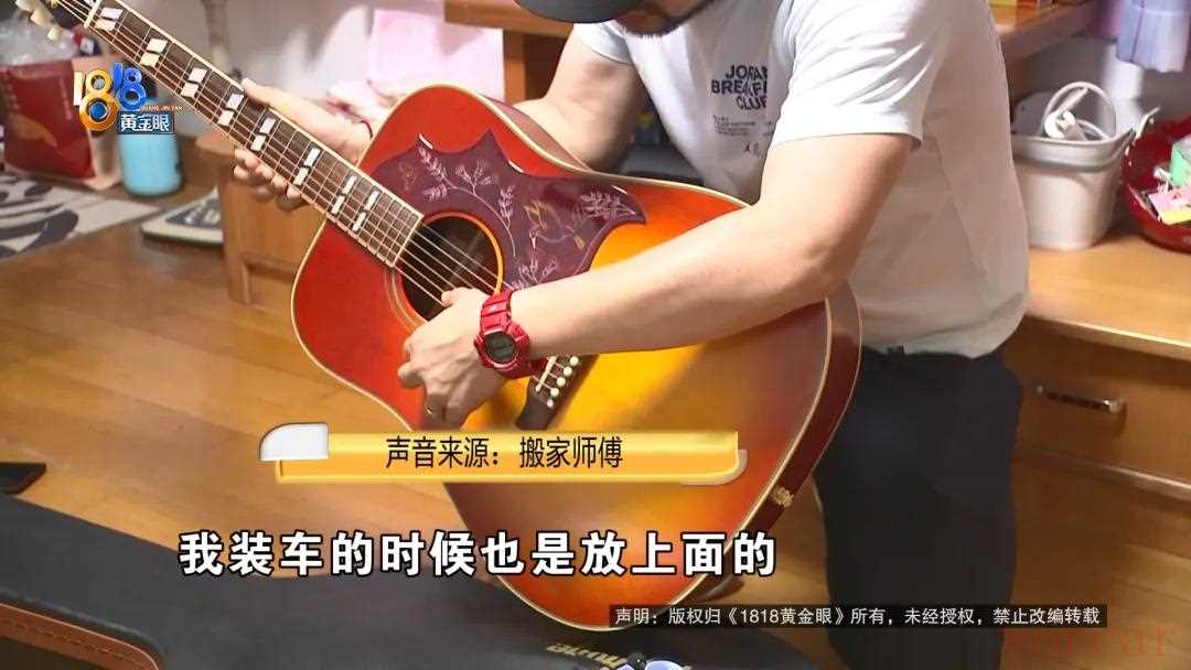 小丁:是,都是扣好的,在搬家之前,我说这把吉他最好你们自己去搬,家人都没跟我说,叫师傅去搬。