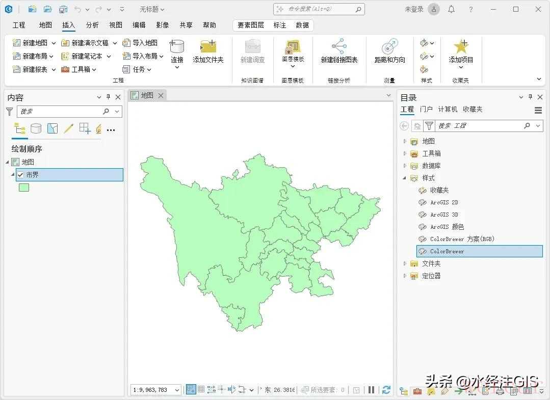 下载文件打开 ArcGIS Pro,在“插入”菜单栏点击“导入样式”按钮,选择上下载的 style 文件即可完成导入。