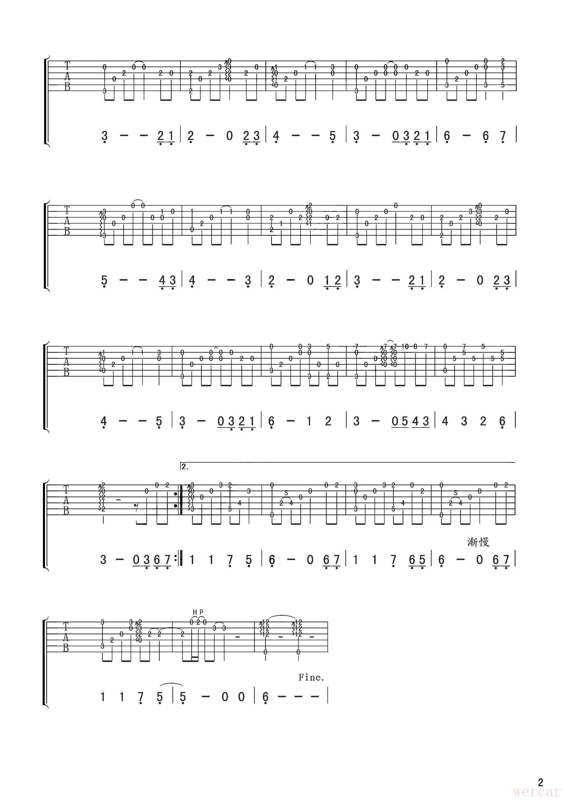 "指弹吉他谱 (TAB):"