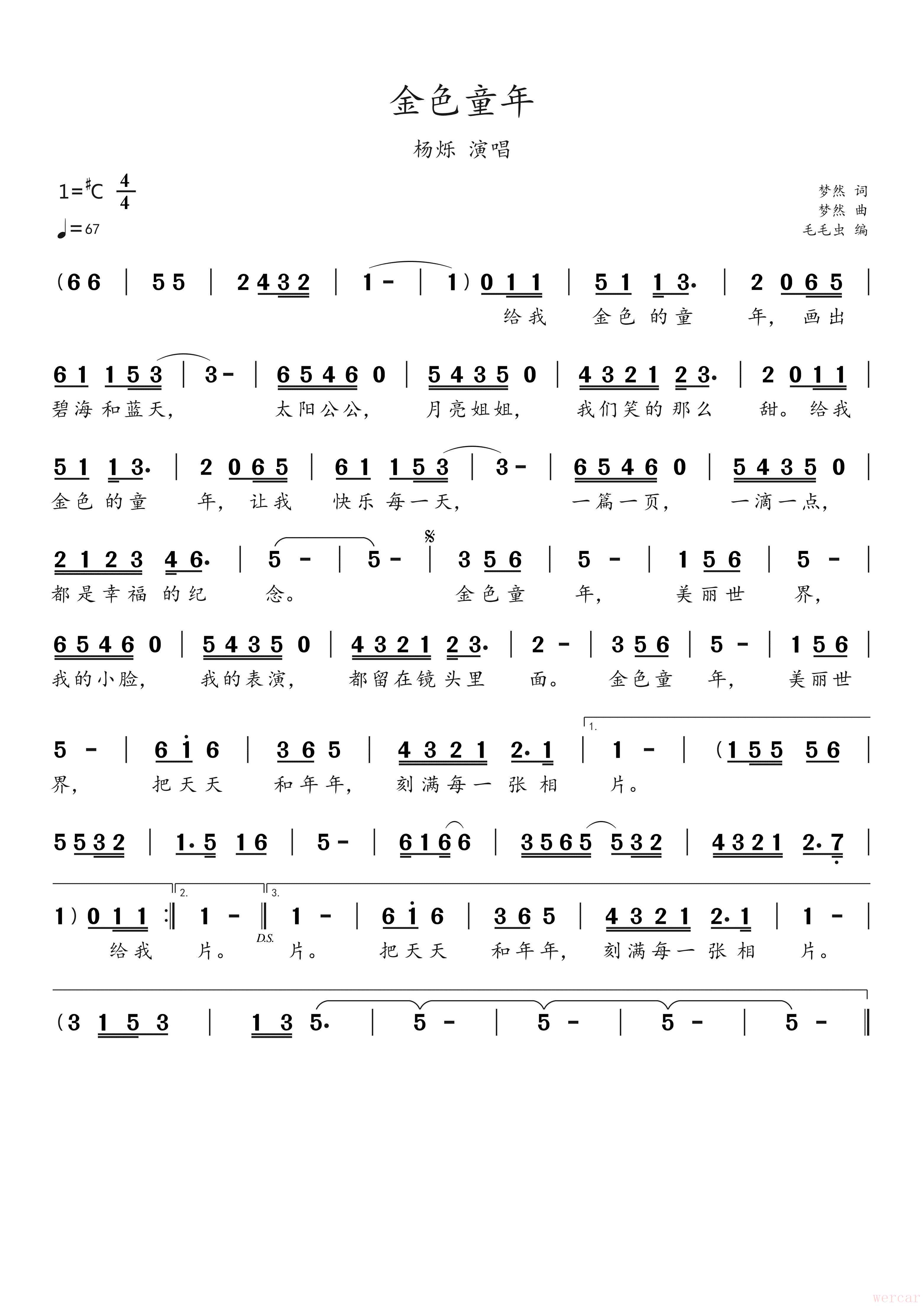 这是《金色童年》这首歌的简谱,词曲作者是梦然,演唱者是杨烁。