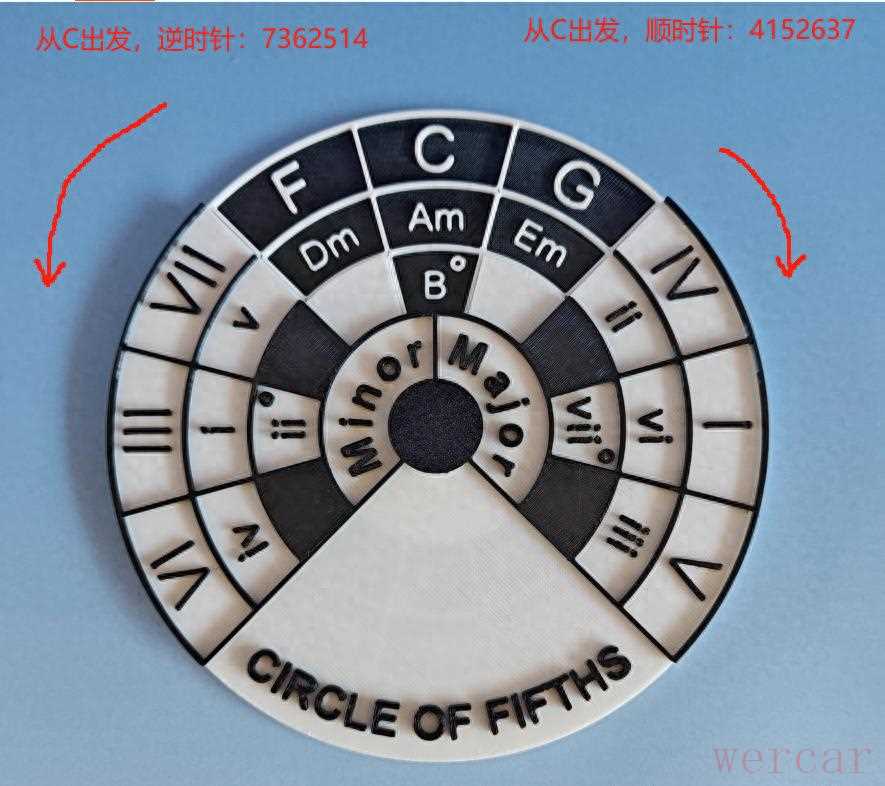 补充:文章开头还挖了一个小坑,五度圈只讲了逆时针,那顺时针是干嘛的呀?逆时针是7362514,是6弦到1弦,顺时针就是1弦到6弦 4152637呀,呵呵