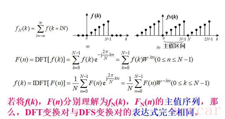 4:周期序列的离散傅里叶变换DFT与离散周期序列的离散傅里叶级数DFS可以认为完全相同。
