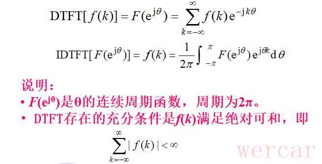 对于非周期序列的离散时间傅里叶变换(DTFT):
