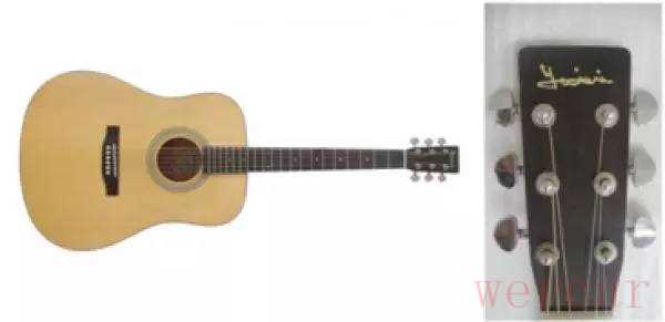 雅马哈作为大家最为熟知的品牌,涵盖的领域极其广泛,仔细看雅马哈的LOGO,会发现其实是由三把交叉的音叉组成的,其实做乐器其实才是雅马哈的老本行。F310作为一款售价800元左右的D型民谣吉他,在配置上并不出众,面板采用云杉合板,背侧板是较为廉价的柳桉木合板。但由于雅马哈强悍的品控以及多年的乐器制造经验,使得这款琴在做工方面也属上乘,同时在手感和音色上找到了一个完美的平衡点,为入门级民谣吉他树立了一个标杆。