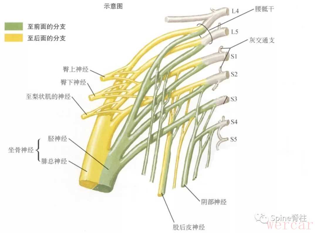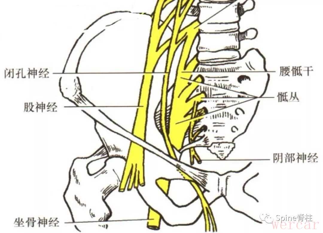 理论上,L4-S3脊神经出椎间孔后逐渐汇成骶丛,而后形成坐骨神经(Sciatic nerve),如果坐骨神经受损则同样会出现类似于腰椎间盘突出症的下肢放射痛(坐骨神经痛)。