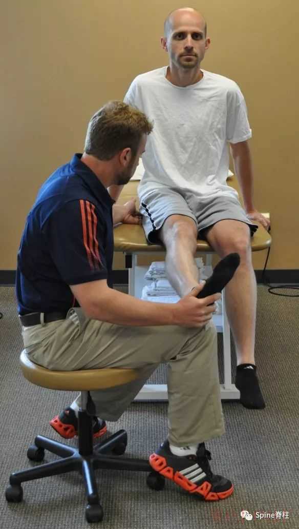 6、Seated piriformis stretch test:病人坐在检查台边缘。髋关节屈曲而膝关节伸直。当触诊坐骨大切迹时,检查者内旋内收患肢以引发症状。