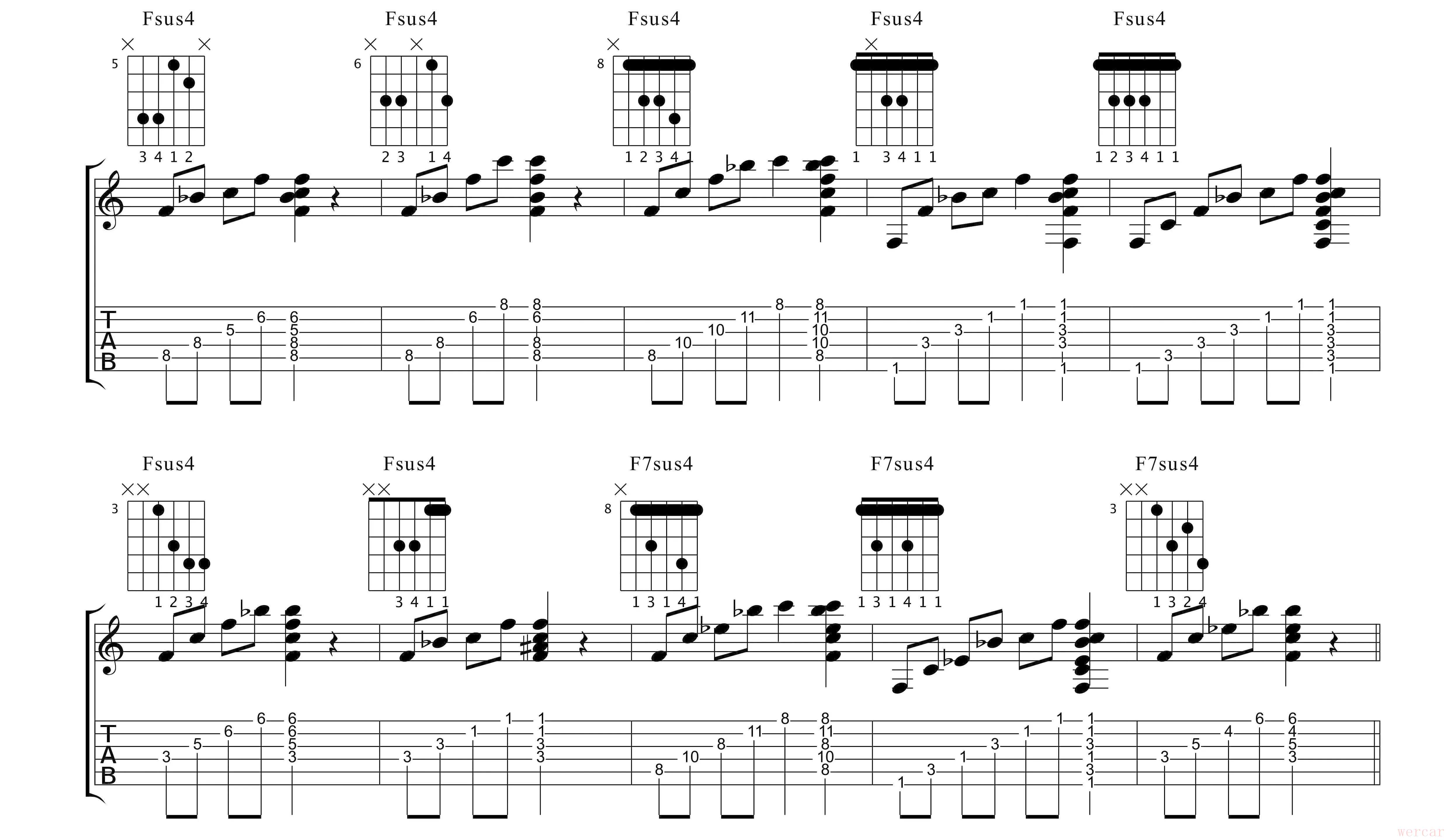 4、FSus4 和F7Sus4