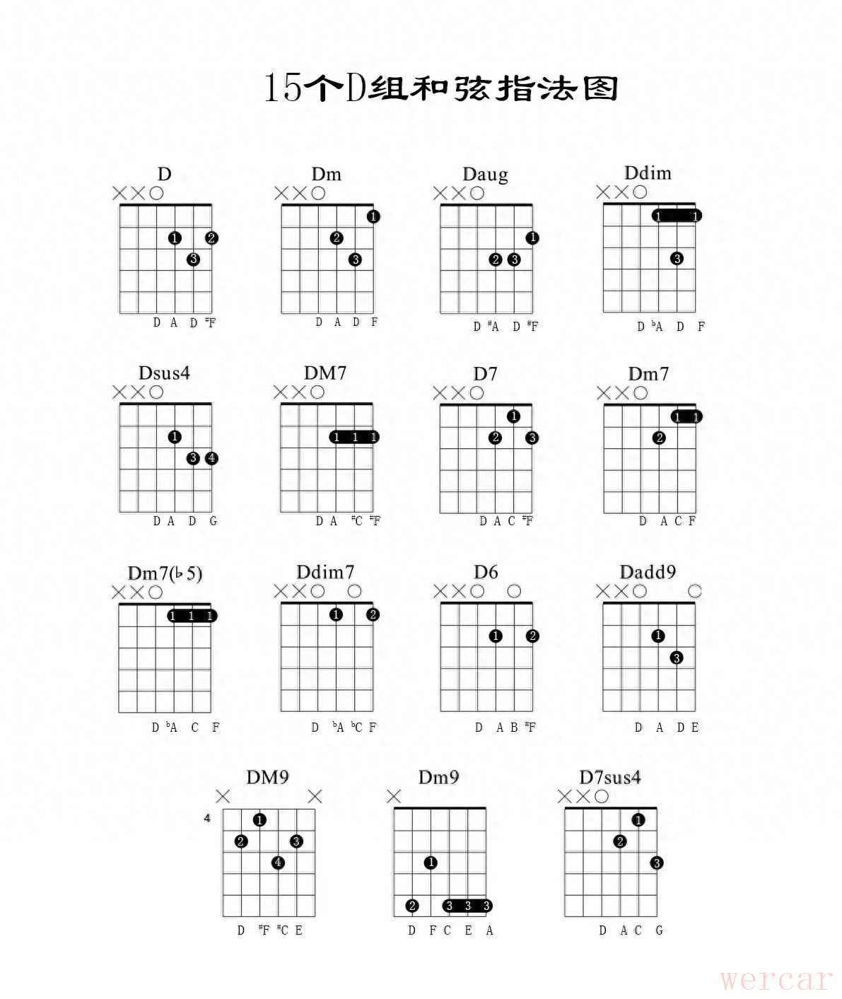 1、十五个D组和弦指法图