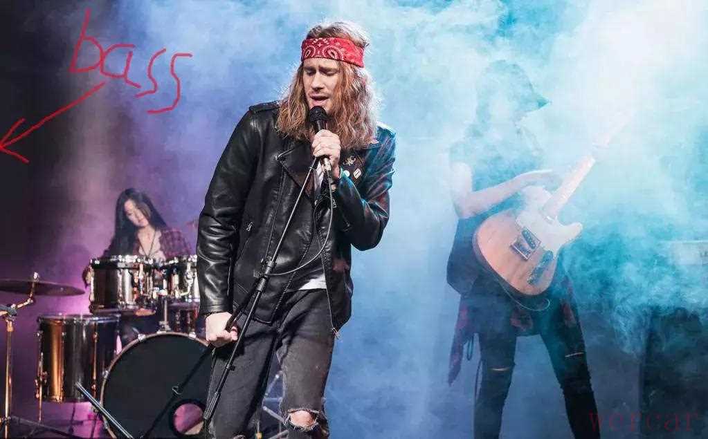 "视觉焦点不在贝斯手:" 演出时,灯光、舞台设计通常更聚焦在主唱和吉他手身上,贝斯手往往在舞台侧面或后面,不太容易被直接看到。