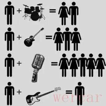 C:这是个好问题,我觉得女孩儿喜欢的是人不是乐器,所以能逮妞儿的不管在演奏任何乐器都能逮妞儿,逮不着的你当主唱当吉他也没戏,都是个人行为,跟什么乐器没什么关系吧。