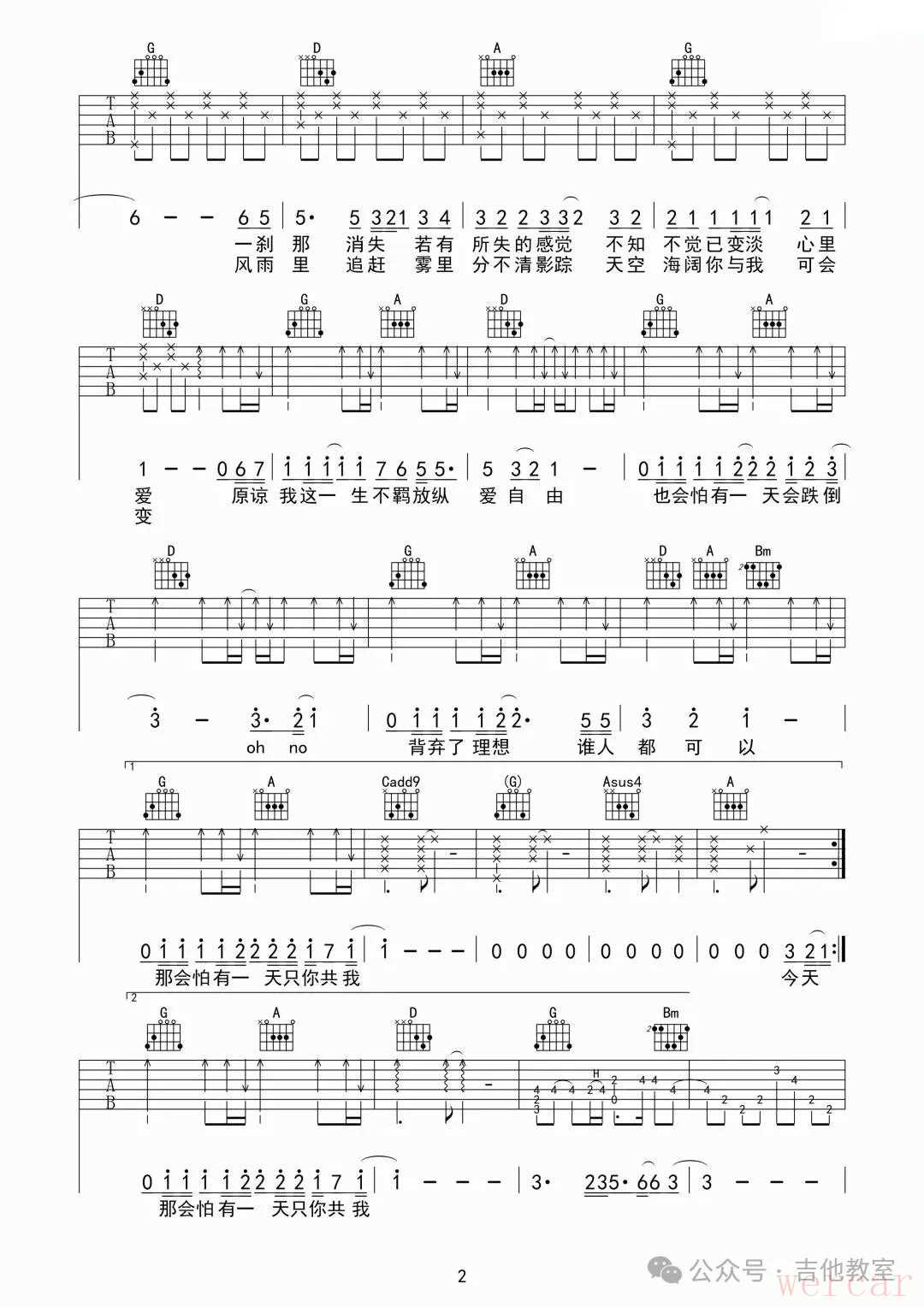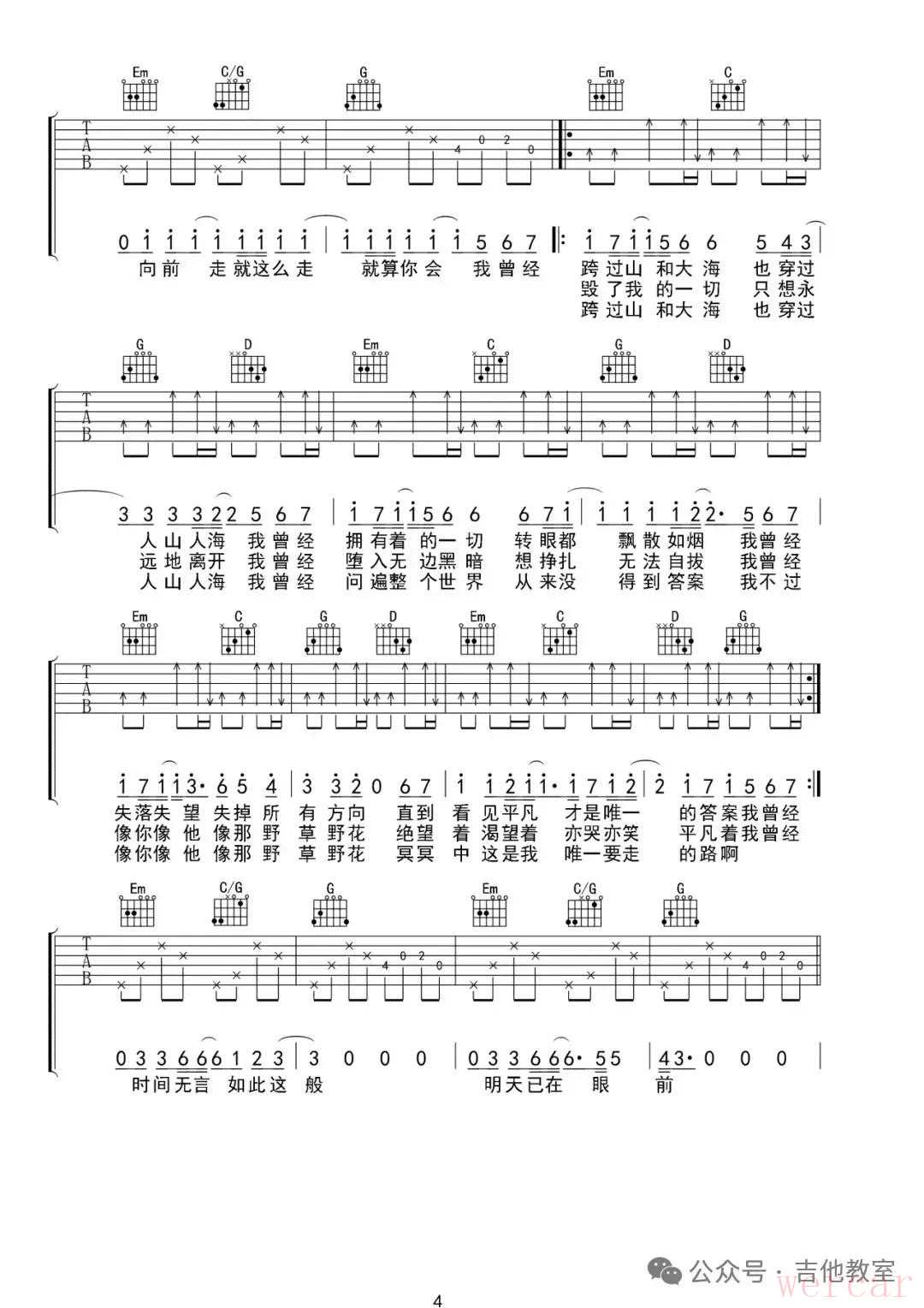 朴树《平凡之路》吉他谱