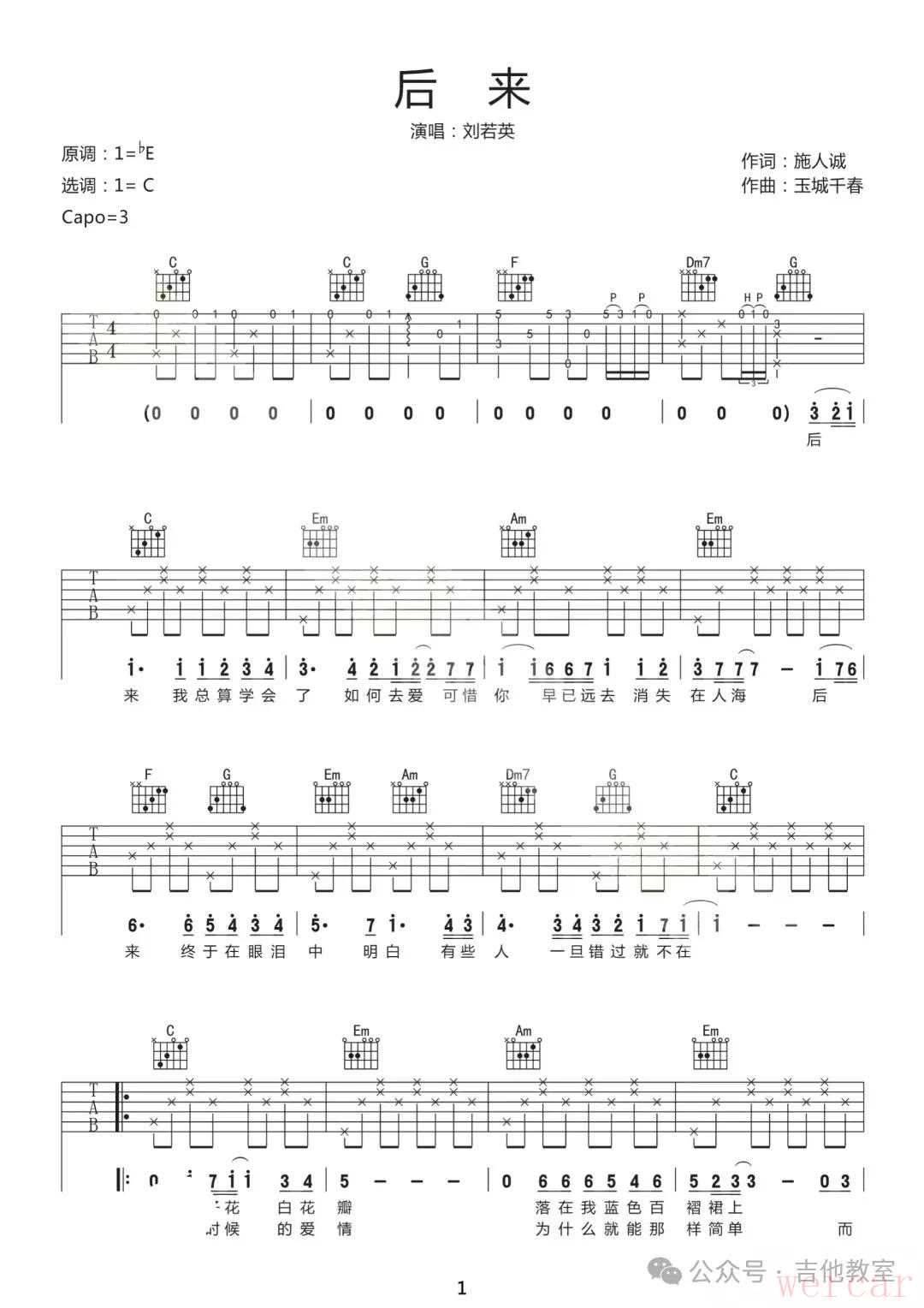 刘若英《后来》吉他谱