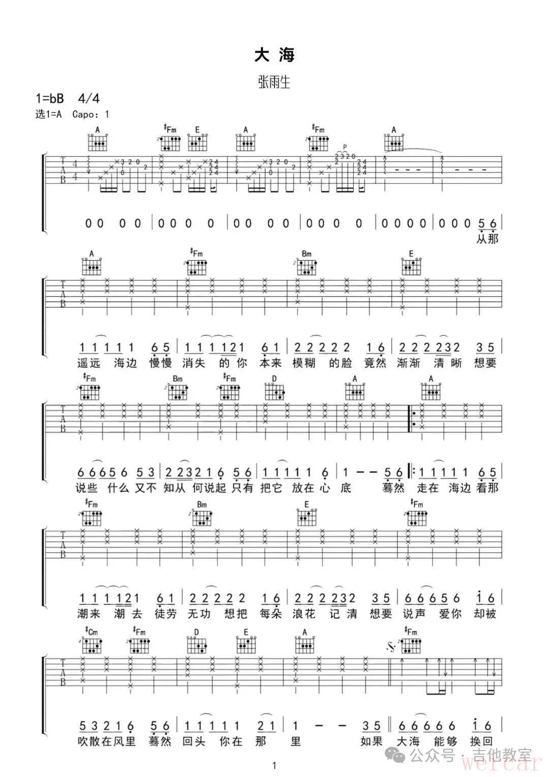 张雨生《大海》吉他谱
