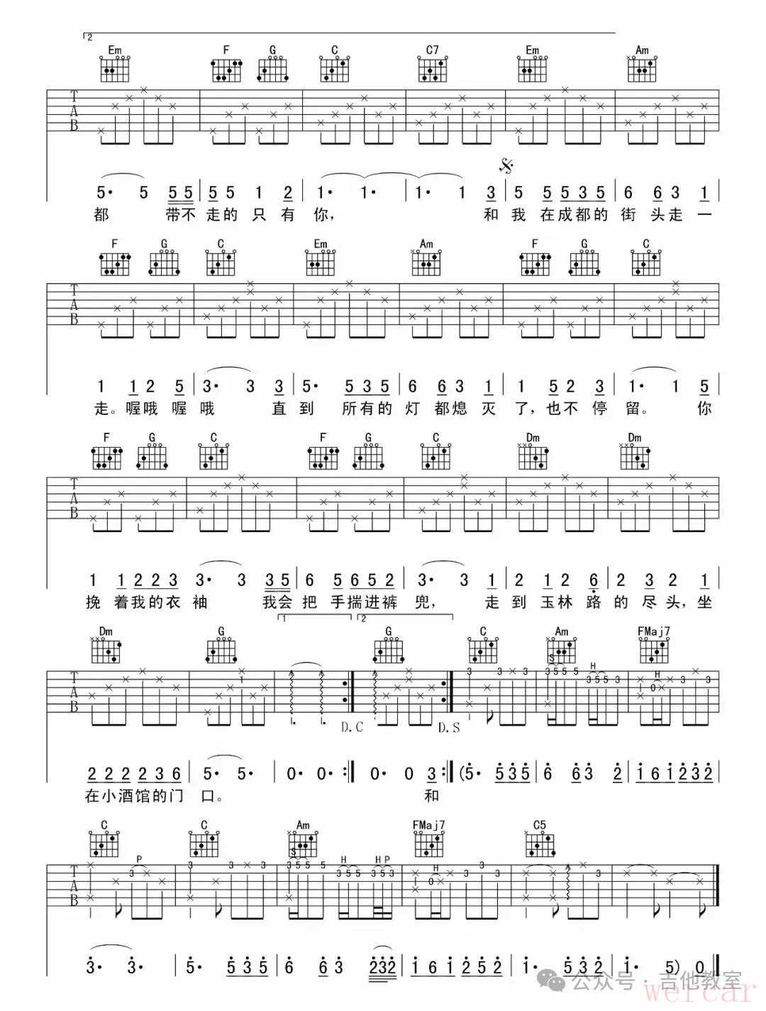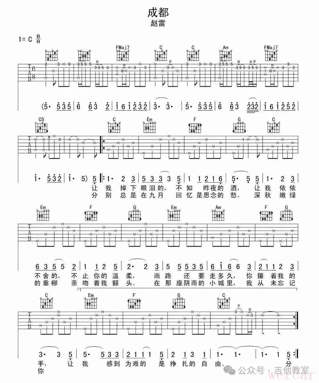 赵雷《成都》吉他谱