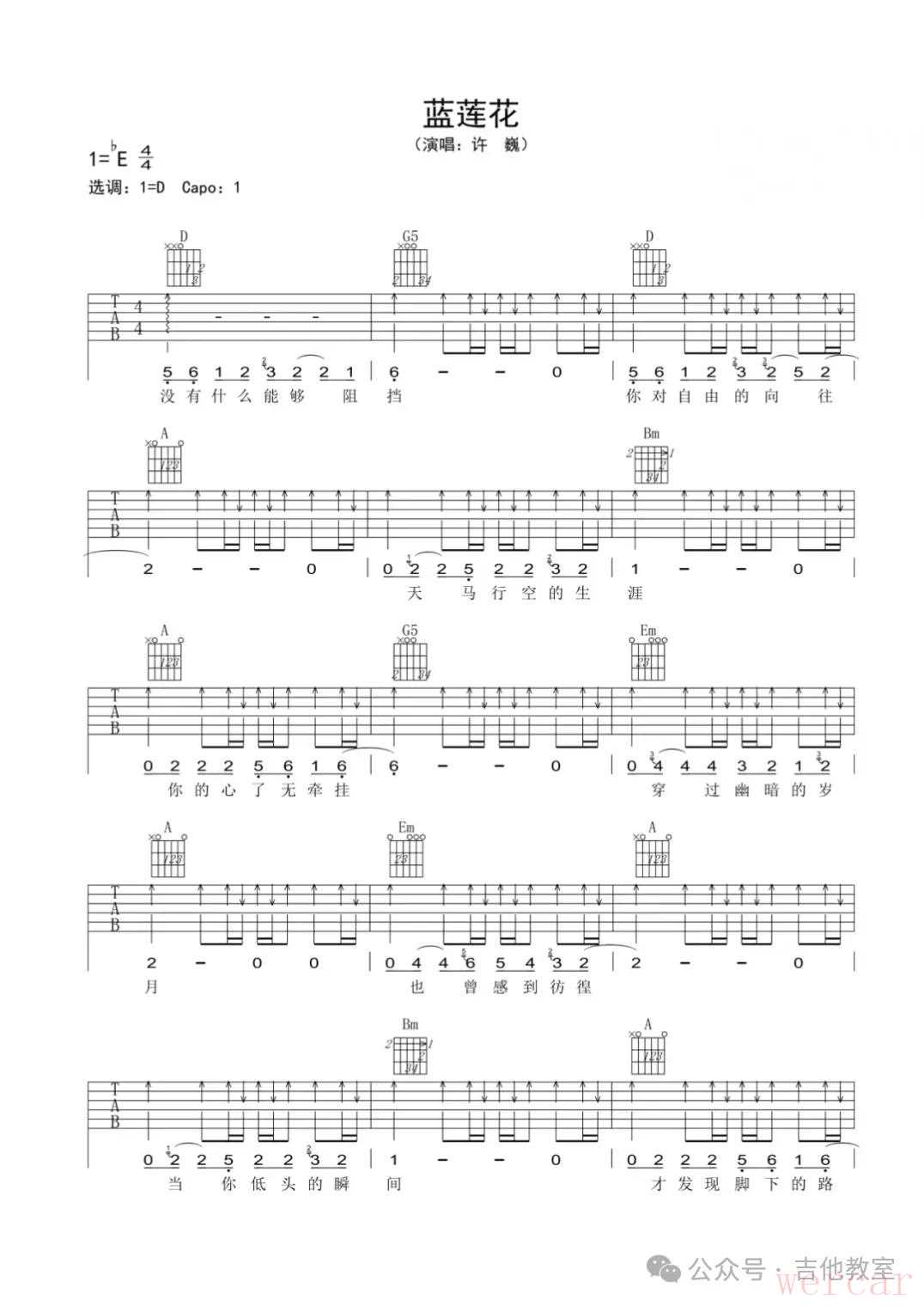 许巍《蓝莲花》吉他谱