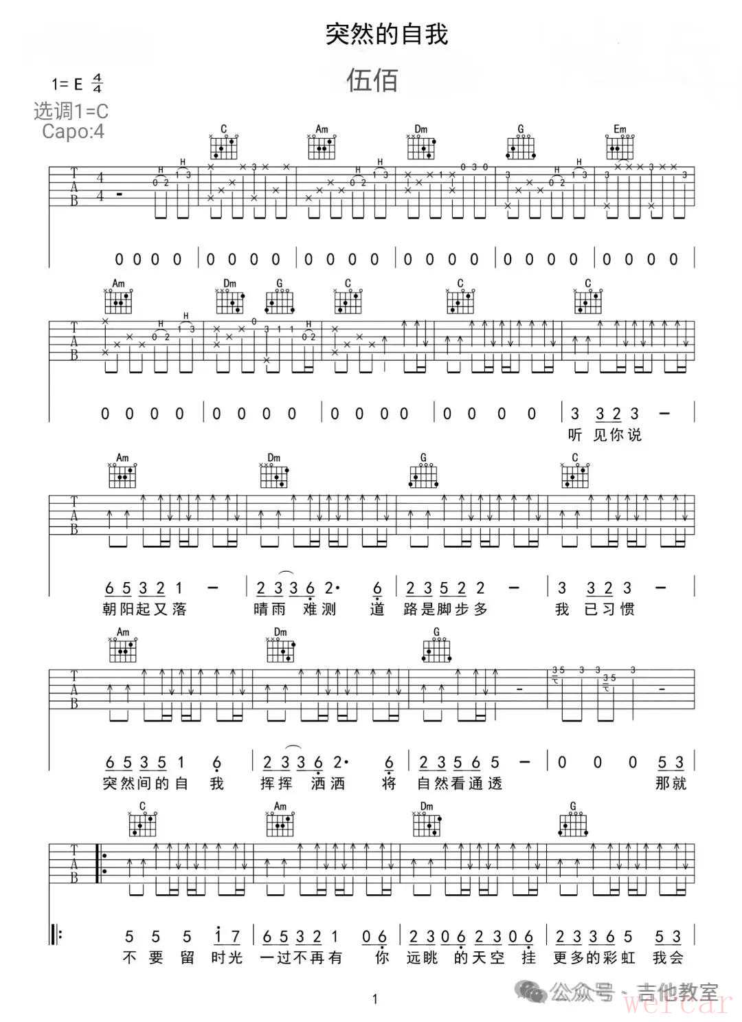 伍佰《突然的自我》吉他谱