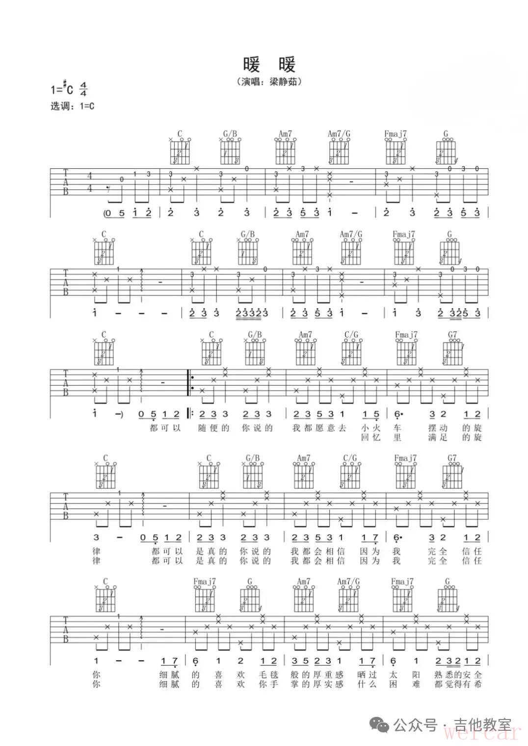 梁静茹《暖暖》吉他谱