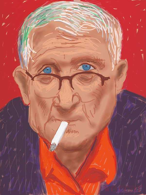 面对自画像风格不断透出其艺术思潮的变化,盖蒂博物馆的策展人之一的朱利安·布鲁克斯(Julian Brooks)认为,大卫·霍克尼的作品始终与时代保持着密切的关系,很大程度上是因为他始终接受和使用新技术,尤其是在2010年iPad发布仅两个月后,霍克尼便开始使用应用程序“Brushes”在平板电脑上作画。