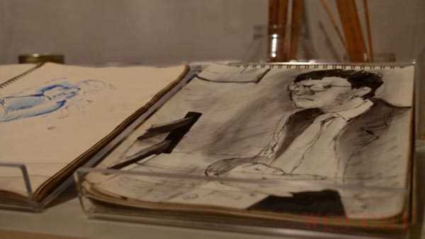 展览展出的部分大卫·霍克尼的素描本