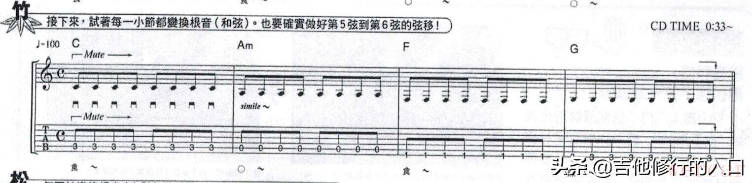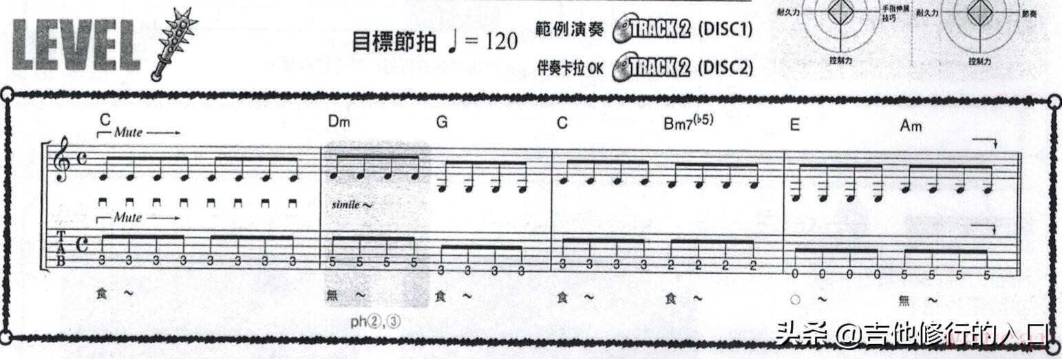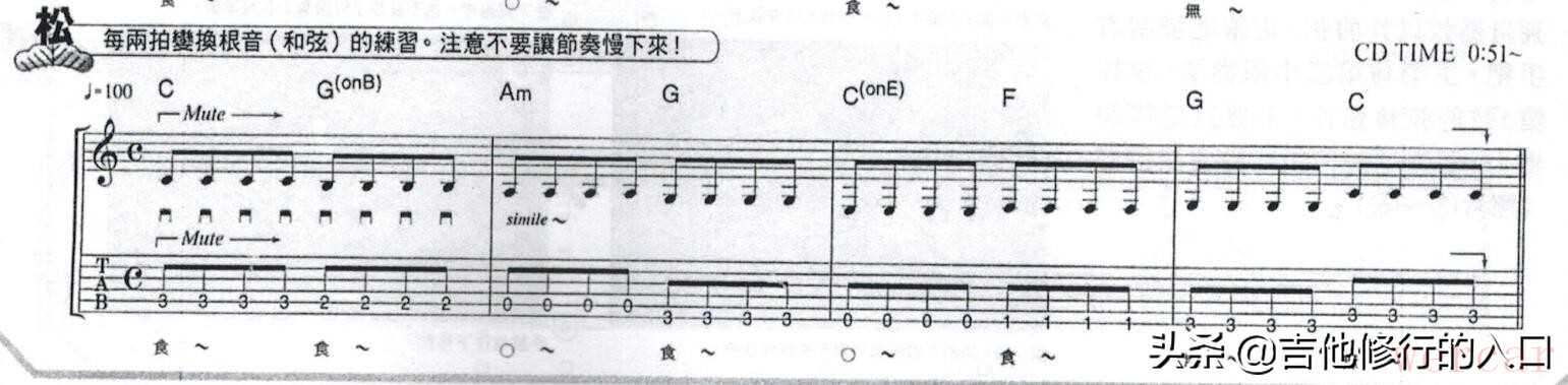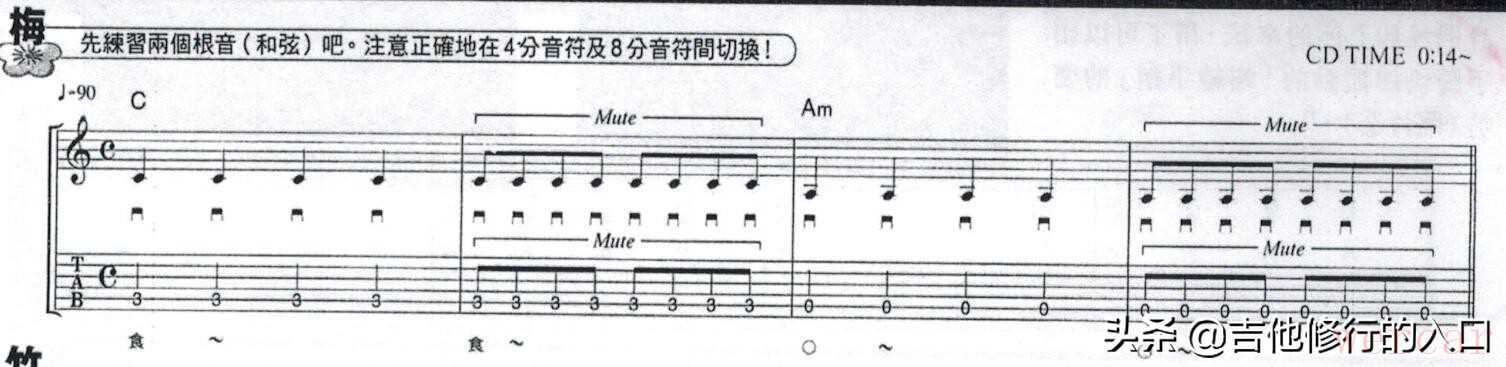 这一节的练习涉及到了左手手指按弦的问题。相信很多从木吉他转型到电吉他的新手来说,在失真音色下弹琴经常会有杂音。这是为什么呢?原因在于左手食指按弦的习惯上。在弹木木吉他时,为了得到很多共鸣的效果,左手食指很多时候都是需要用指尖去按弦,且指尖尽可能不能触碰到上隔壁的琴弦。
