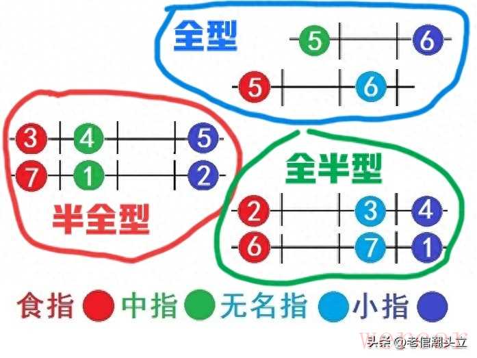 最后是全型,这个最简单,只需要记56(骚拉)两个音。别看音少,它是衔接前两个指型的关键,练熟后能让整个音阶过渡更顺畅,后续拓展其他指法也更轻松。