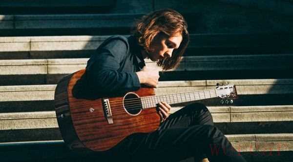 7. 民谣吉他持琴姿势也常常采用站立的姿势。无论是坐着还是站立持琴,都要以双手自然放松为基本的要求