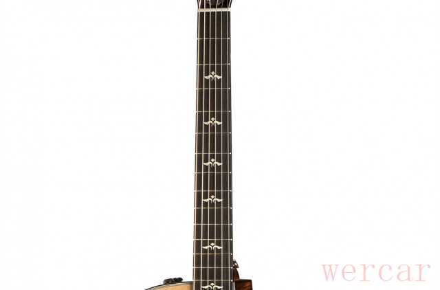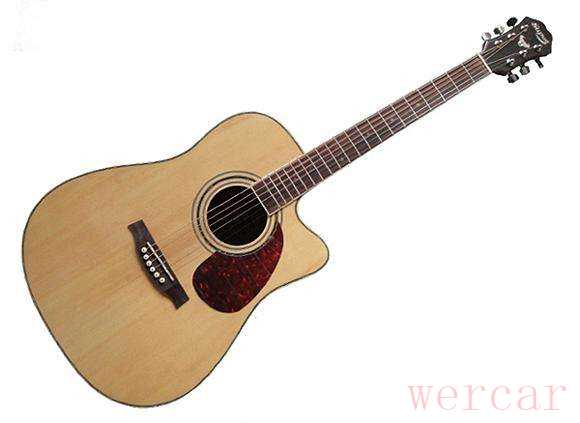 我们从头开始分析一下吉他的各个部位以及其作用。首先我们看到的是琴头部分,琴头的两边分别有三个弦钮,每个弦钮分别控制每根弦,可以通过调节弦的松紧程度从而达到调节音调的效果。