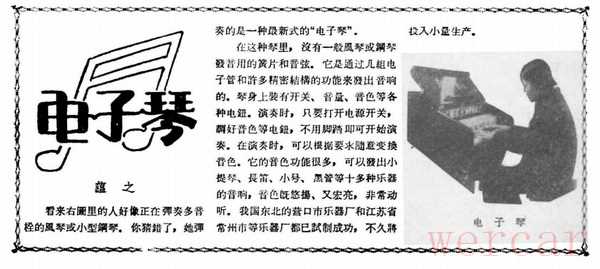 推论结果,中国研制出第一台电子乐器是在一九五八年。那台设备水平如何?还是一九七九年的《人民音乐》杂志。石峰的文章《谈谈电子乐器、电子风琴和电子音乐》(第一期,P48)吐槽道:“我国在文化大革命前就有上海钢琴厂、上海口琴厂等单位进行试制,上海钢琴厂曾制造过较简单的电子风琴。此外,也有少数业余爱好者在这方面进行了一些试验。由于文化大革命中林彪、‘四人帮’对整个文艺事业的干扰与破坏,以至一直没有正式生产。仅有一种附在半导体收音机上的电子琴,那只是一种玩具而已。”