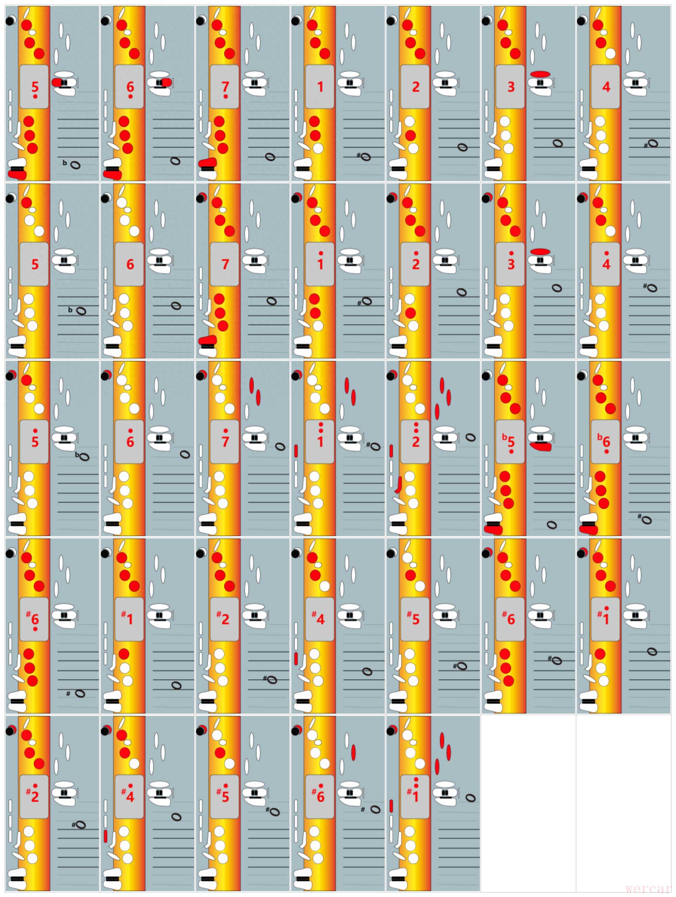 降bE 萨克斯 G调指法表