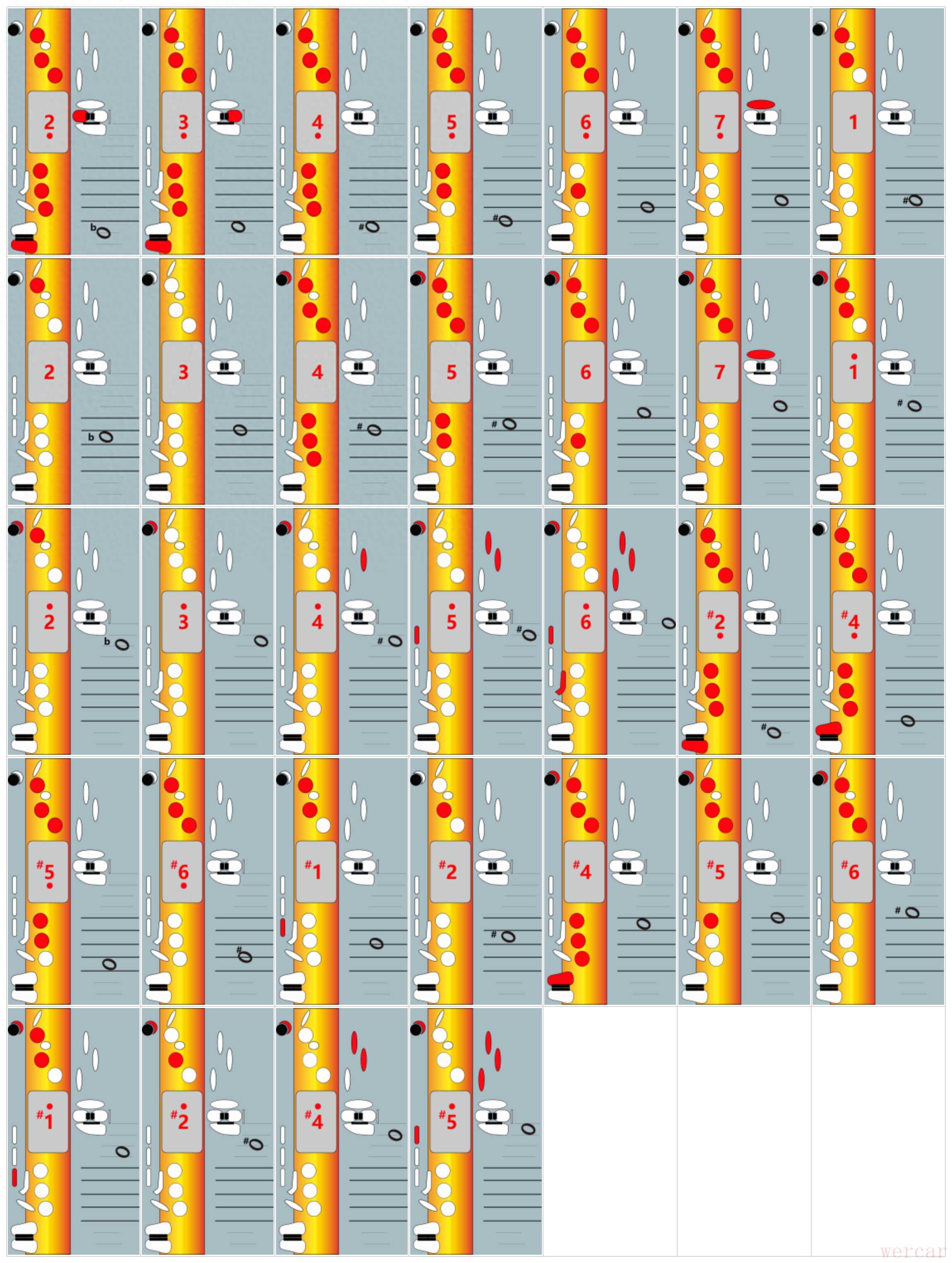降bE 萨克斯 F调指法表