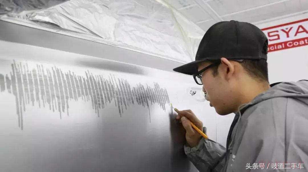然后在制作出花纹后喷上底漆,从车的前大灯一直延伸到后门位置都一个像音乐EQ调节一样的波形纹路,说实话我怀疑做出来会是一个音乐播放器的既视感。